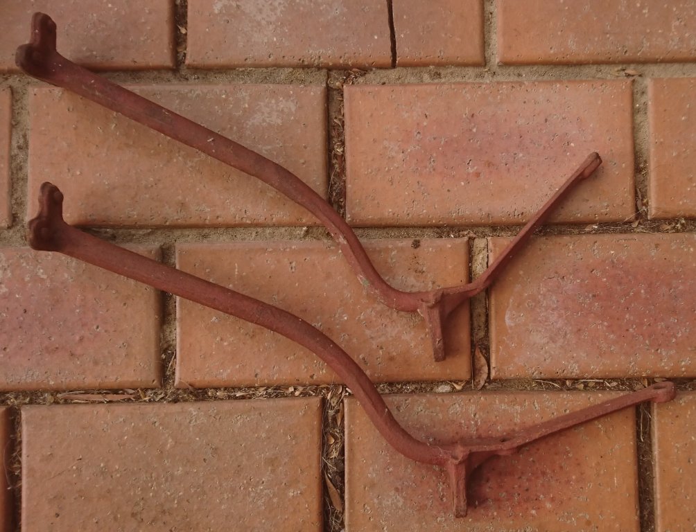 Two 1911-13 running board irons. These are of heavier construction than later ones. They need to be heated and re-set but are very solid with no pitting or other problems. This style is very hard to find. Compared to the 1914-16 or 1917-21 style they are thicker and differently shaped in various places. $200 for the 2 including air mail postage from Australia to the USA.