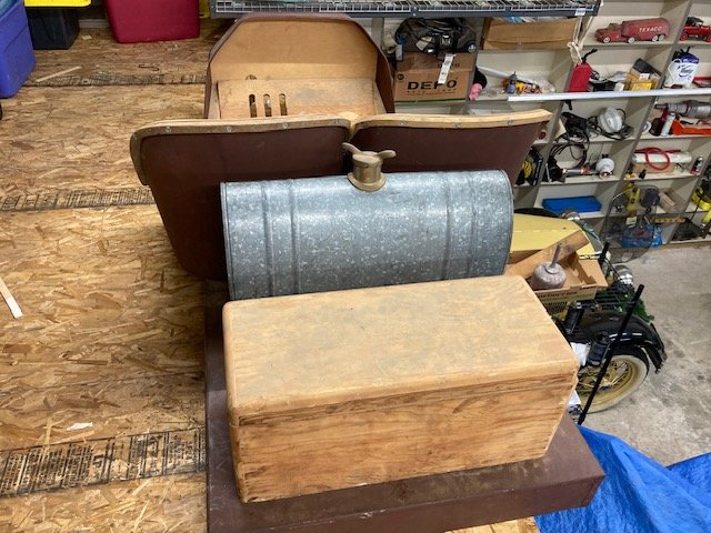Brass model T custom speedster body, all wood, ready for prime. This was custom made by a professional wood body builder in Central California. The seats are molded wood patterned from early 2 cylinder Buicks. They are deeper and a bit more back rests unlike the small metal ones from the fender people. There is a bit more leg room for driver comfort. The rear deck has a wood tool box and a new metal Ford script oval fuel tank with large brass gas cap. The cowl is formed metal for either brass radiator or black one. Floor boards are included. This a a very high quality body that has never been mounted. This body was made by the same builder that built the HCCA raffle model t speedster Daffodil a few years back. This body will not disappoint and is ready for paint and upholstery. $2250.00, much less than the commercial body kits on the market today. please call frontyboy, i am listing this for him. thank you Harold III