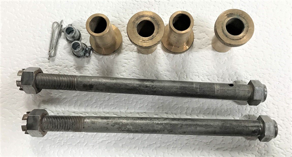 One set NORS spindle bolt kit with nut, bushings, oiler caps & cotter pins $56 shipping included to the USA