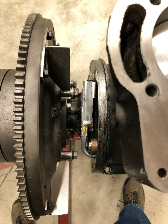 Magneto magnets have been removed and oil paddles have been installed, along with high volume oil line and Ford Faithfull transmission cover and