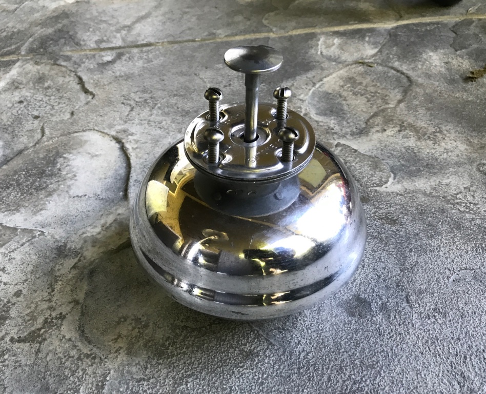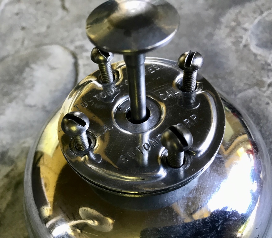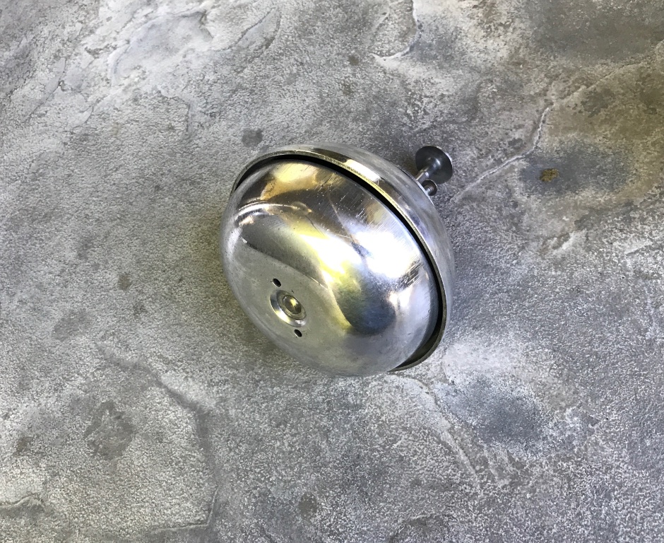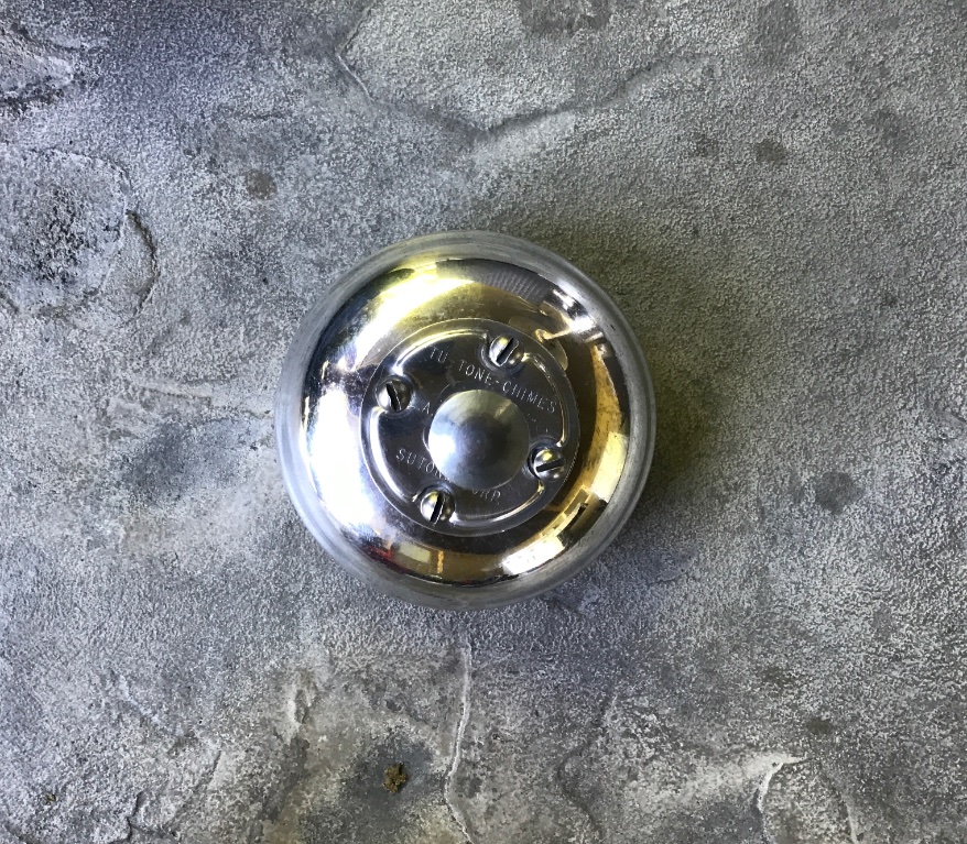 Original Tu Tone Chime Bermuda Foot Bell, excellent condition, no damage, works perfect. Polished aluminum. Very loud “Ding Dong” when plunger is depressed with foot. Has original plunger. Ready to mount and use. 5 inch diameter. Thrill the ladies and the kids. Easy to install in footboards with plunger on top. 200 includes shipping US.