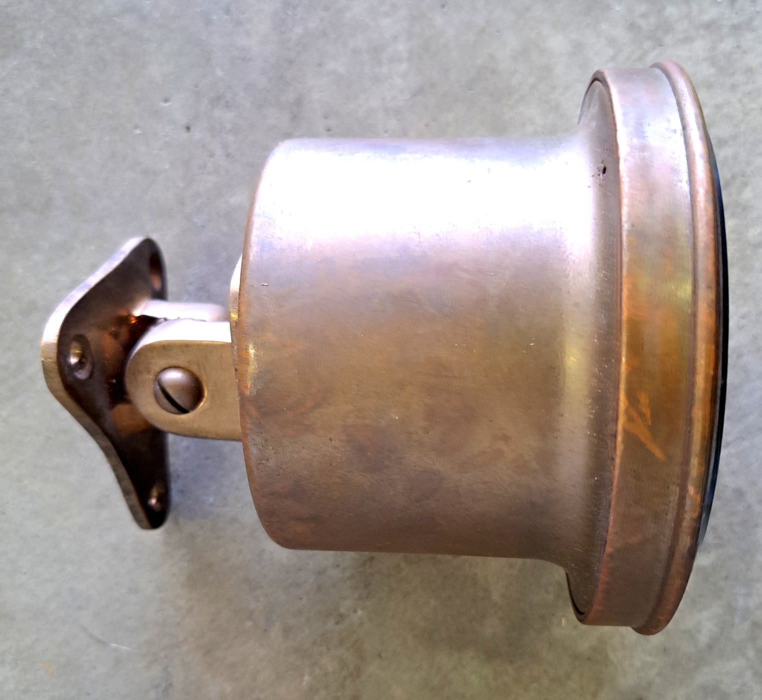 Early large bezel Stewart and Clark brass clock with front key access. Missing key. Square shank. Easy to make a replacement. Also include is a cast firewall mounting bracket. Price is $325 with free domestic shipping. Mark Chaffin (951) 805-0928 SOLD