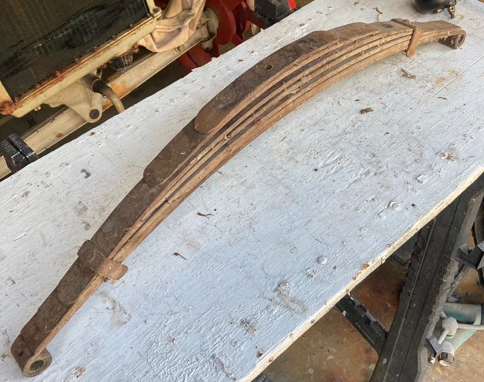 Its peculiar. That’s why only $100 + the ride. Bolt holes only in main spring and top 2 springs. None in other 4. Oiler holes both ends of main spring. See 2 tabs riveted to fifth leaf…. gwhouse731(at)gmail.com