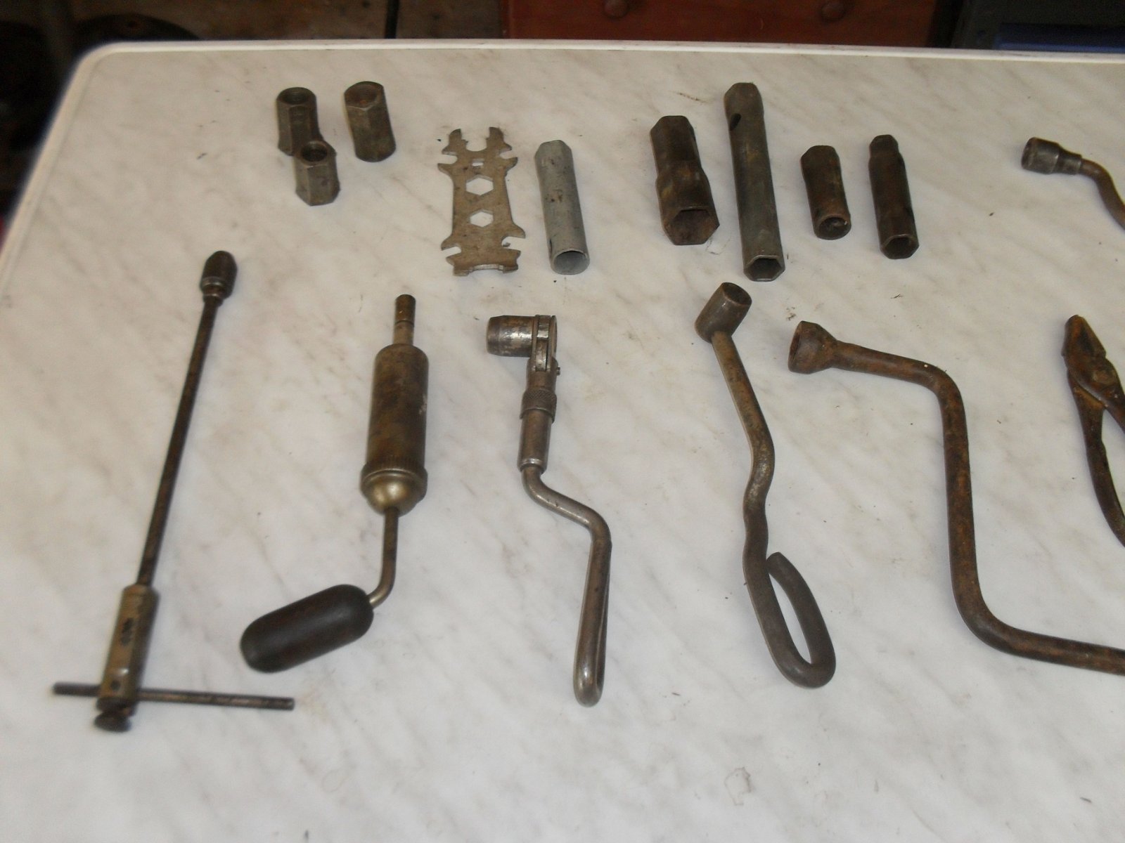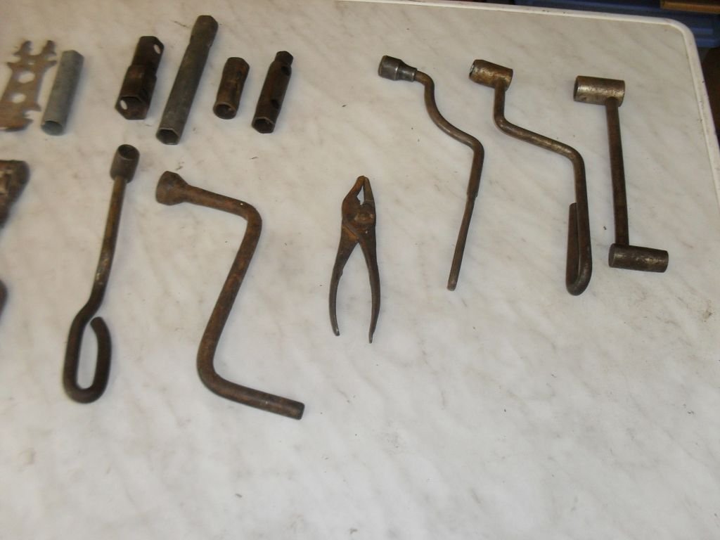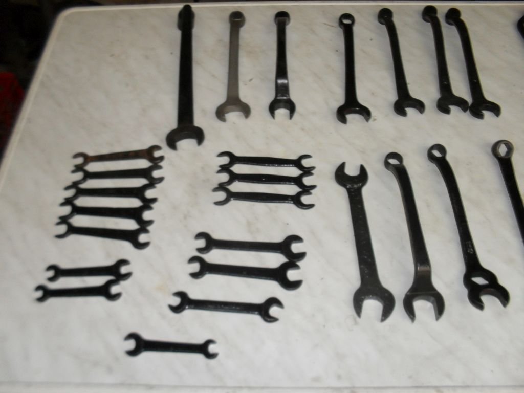(5) T1917 (2) M (1) ford (2) M-40-7017 with difference spark plus sizes. (1)M-52-17017 (1) ford Pliers with screw driver handle (1) monkey wrench Model A I think. (3) knock offs not model T (1) grease gun with wood handle (5) sparkplugs wrenches (3) Walden wrenches. (10 crank and lug wrench. Name your price, I have had these too long.