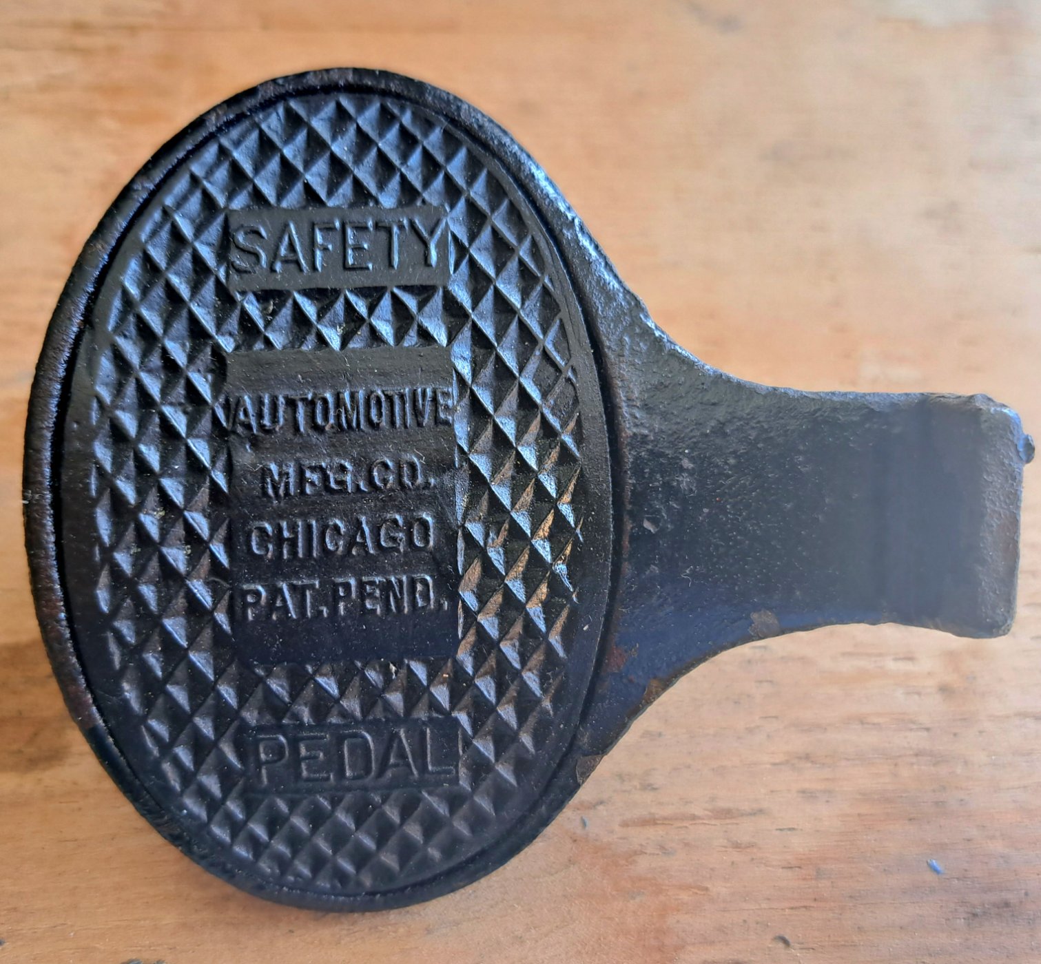 Neat accessory brake pedal attachment. SAFETY PEDAL. Heavy metal construction with nice rubber insert. Looks to be NOS as the rubber portion shows no wear. Price is $40.00 plus $8.50 domestic shipping. Mark Chaffin (951) 805-0928
