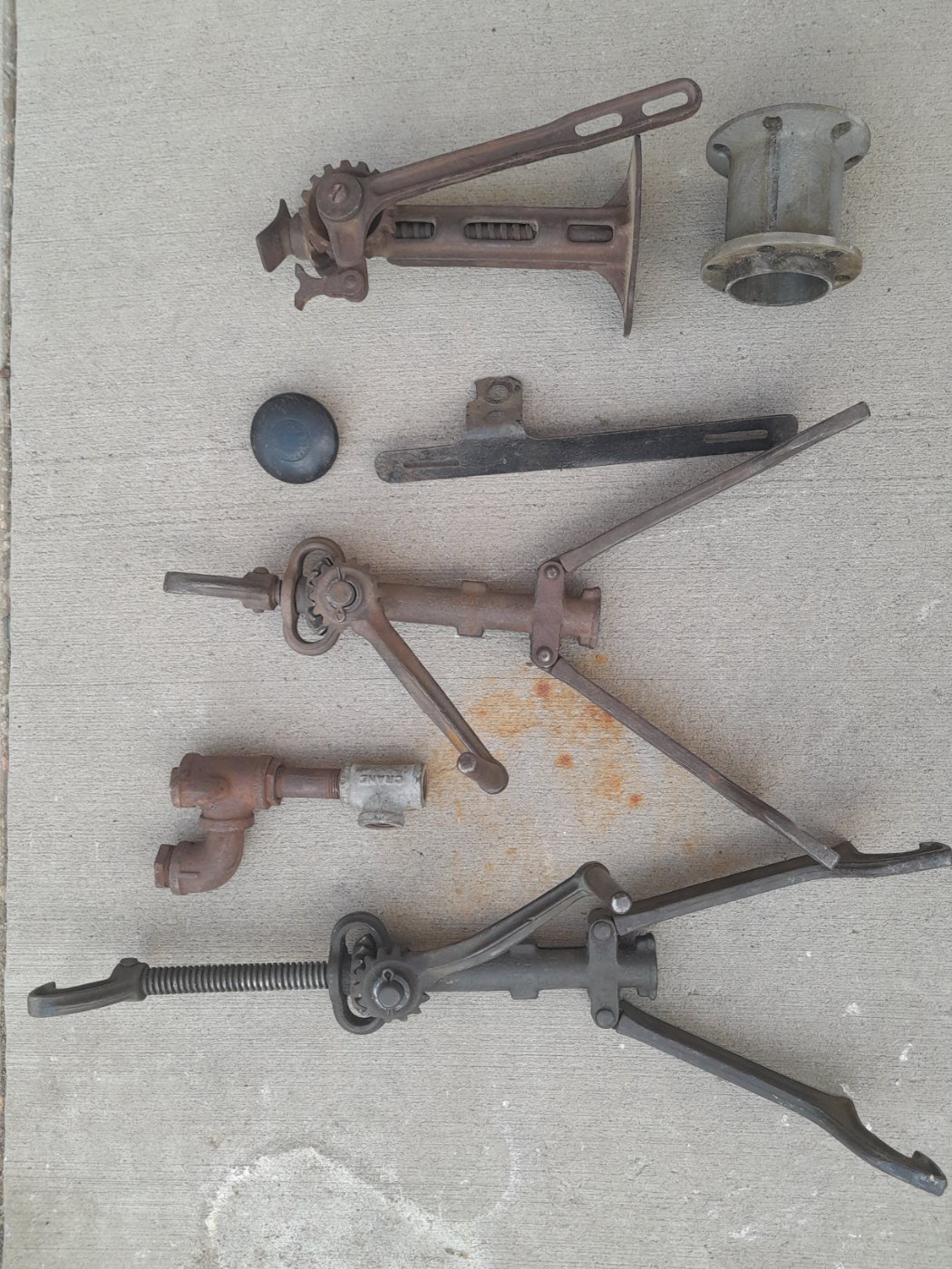 Nice Model T jack good condition $50 Rim spreader with some original dark green paint good condition $50 The other Rim spreader is $45 all plus shipping