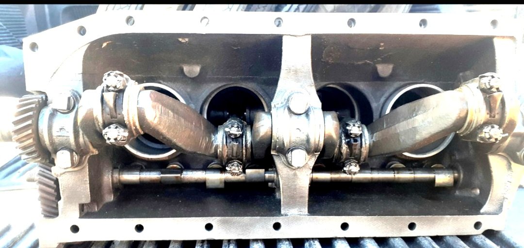 Nice rebuilt early short block (01/13). New valves, lifters, springs, keepers, camshaft and crank gear. Reground camshaft and rebabbited bearings. New babbit mains and rods. Crank looks to be .010 under. Pistons .040 over. Also includes a nice low head.