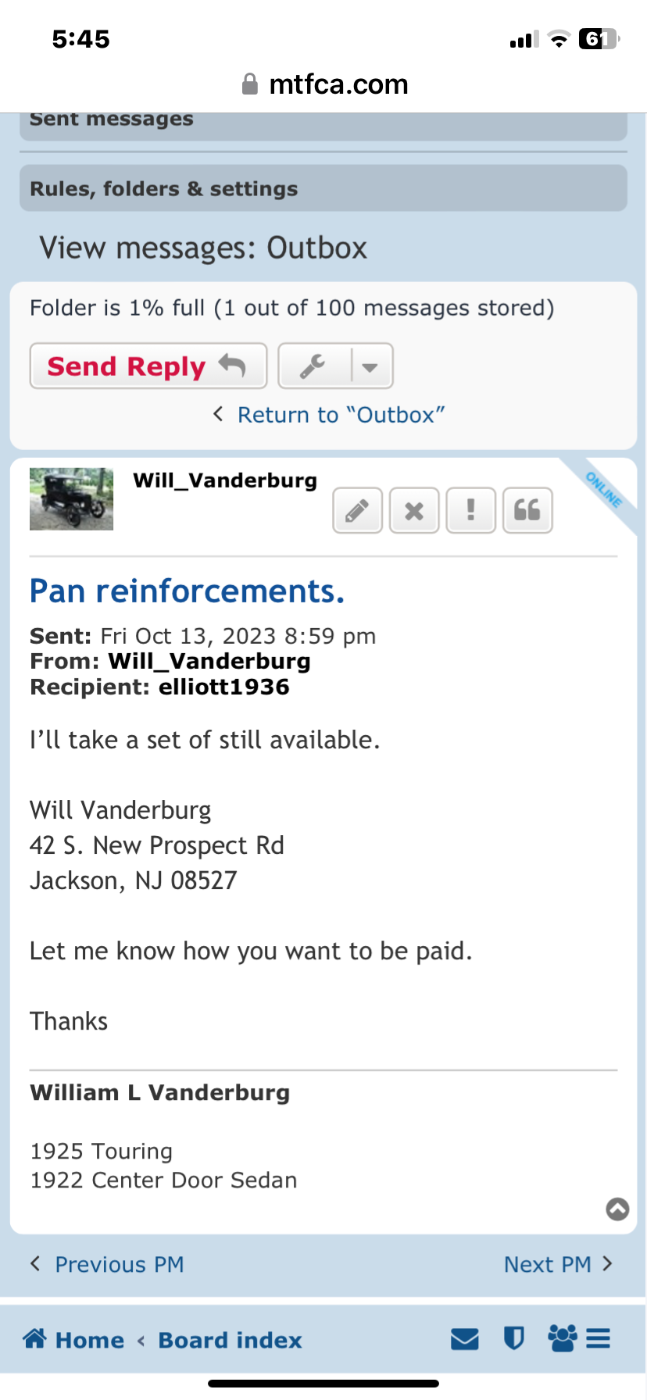 Two (2) sets of model T pan reinforcements for model T pan. $10.00 per set plus cost of postage to your address. Tom five03-644-937four.