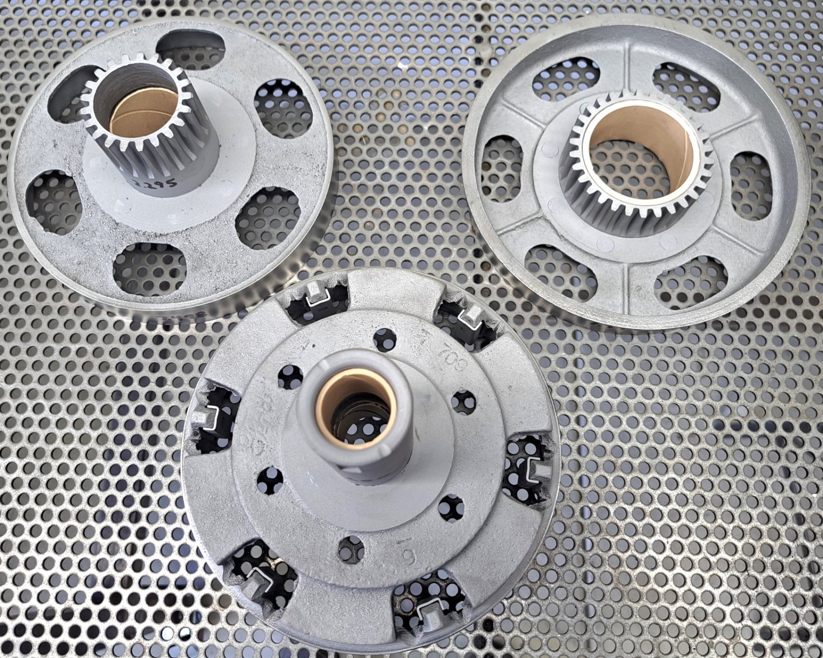 One very nice transmission drum set (26-27). Very minimal wear present. Overall excellent condition. You can either buy a new set of drums for $2,000+ or buy, disassemble, clean and inspect many transmissions (like I did) before you find a set as nice as this. Price for the complete set is $600 with free domestic shipping included. Mark Chaffin (951) 805-0928. SOLD