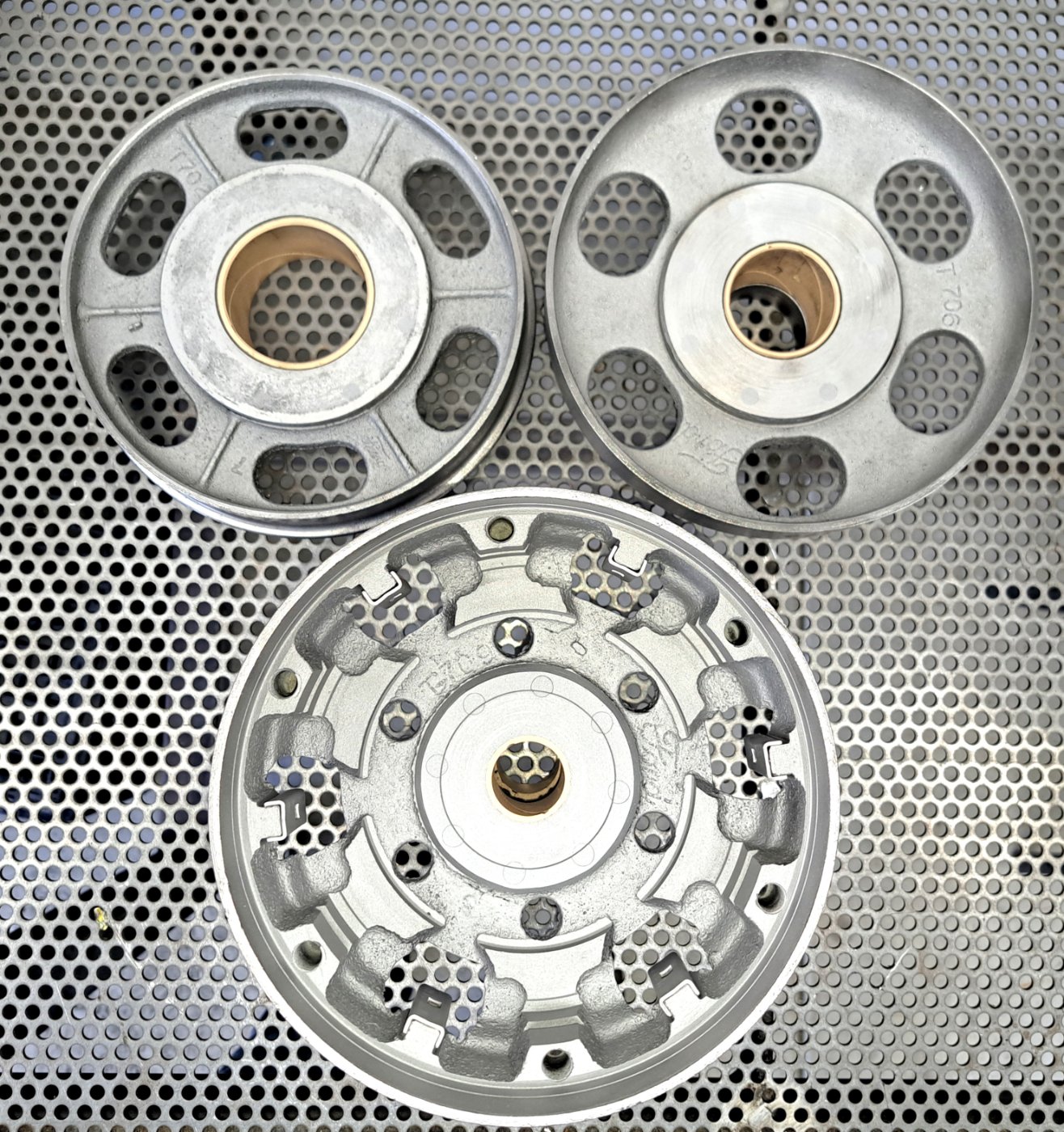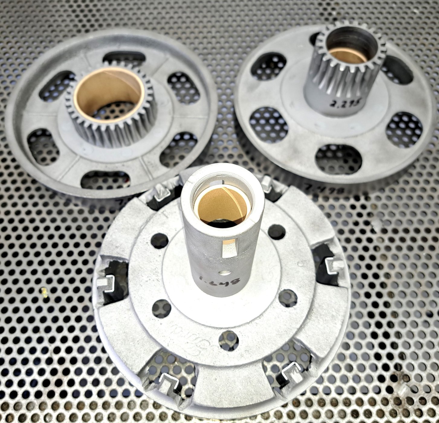 This is the last set of good drums I will be selling from my personal stash. Very good set of 26/27 transmission brake drums. No visible cracks. Gear teeth and bearing surfaces in really good condition. Drum diameter excellent; however, some minor pitting. Price for the complete set is $600 with free domestic shipping included. Mark Chaffin (951) 805-0928 SOLD
