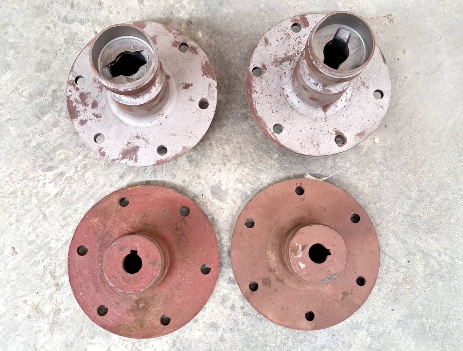 Front and rear hub set for wood wheels. Later style. Threads and keyways are good. Price for the set is $150 with free domestic shipping. Mark Chaffin (951) 805-0928