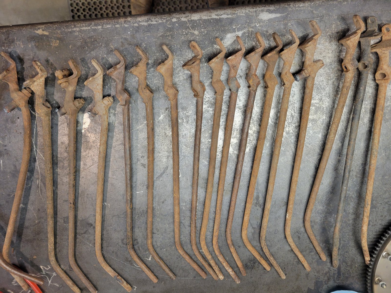 For Sale 18, 1913-16 front fender irons. Some have pitting, some will need to be tweaked. $30 each. Steve 701 212 5009