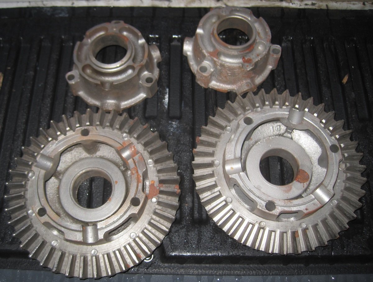Differential Housings with ring gears. The housings look OK, the ring gears are junk. At least the bolts are salvageable. Asking $10 each.