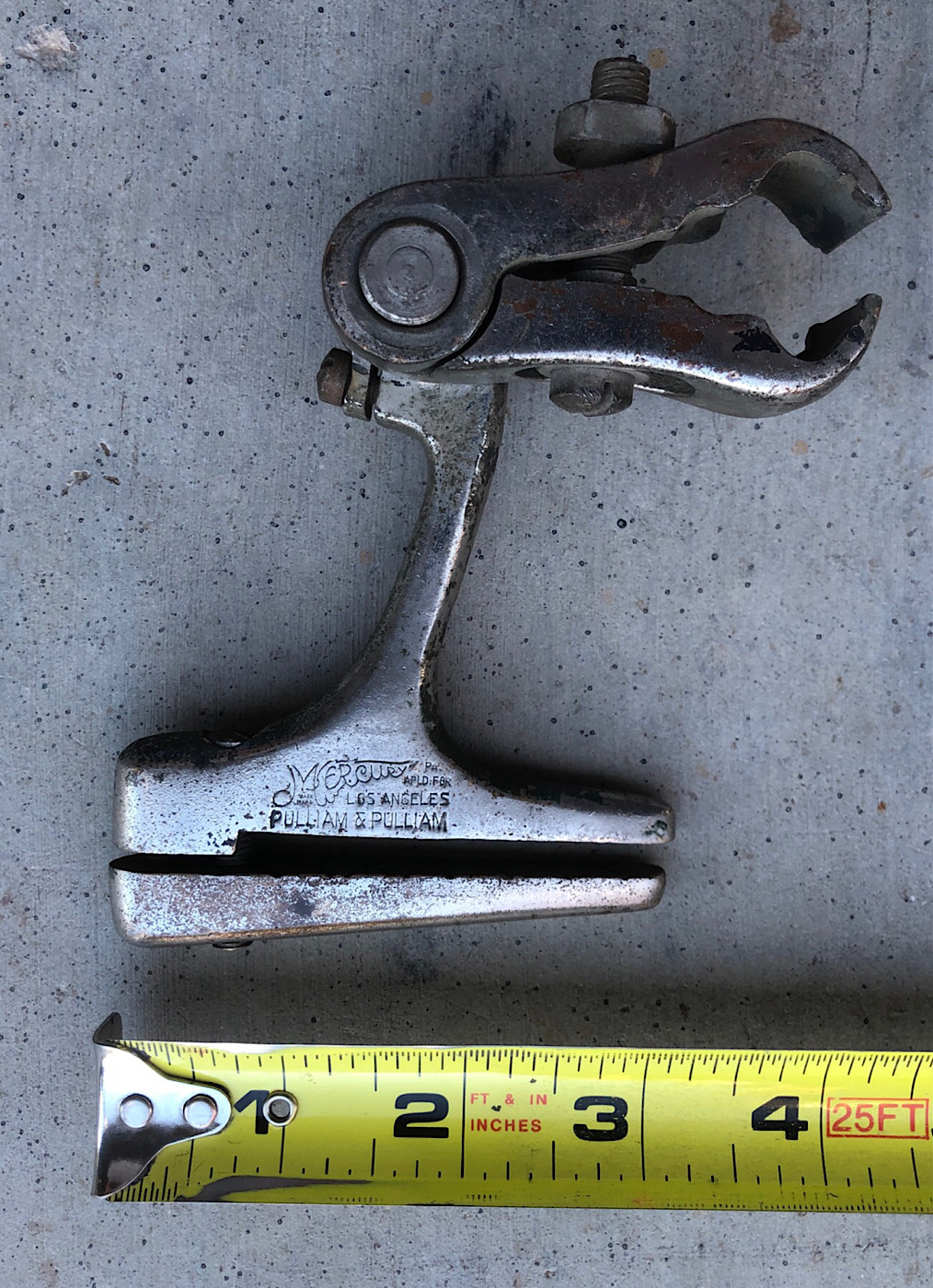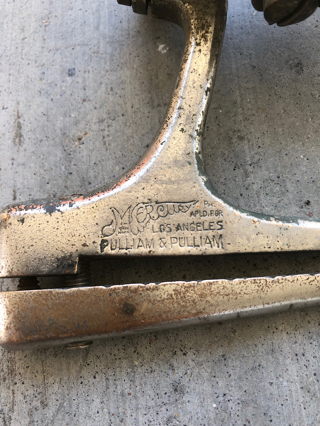 Here’s a rare Mercury speedster part made by Pulliam & Pulliam a Los Angeles dealer of the Mercury speedster body. I believe this is a side windshield wing clamp. I don’t know if these came in pairs but this is the only one I have and in my years of collecting T accessories it’s the only one I’ve ever seen. Some of the original nickel is coming off but is in otherwise good shape.