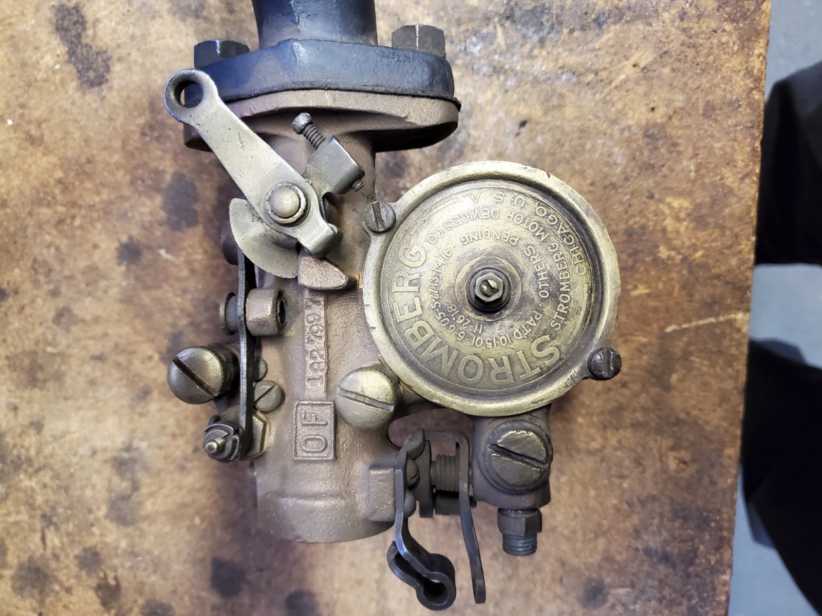 This Stromberg OF came on my 20 runabout 15 years ago but when I rebuilt it I decided to go with a HN Straight through, the manifold has just been hanging on the wall. The threads are in great shape and the pipe nut screws all the way on easily.