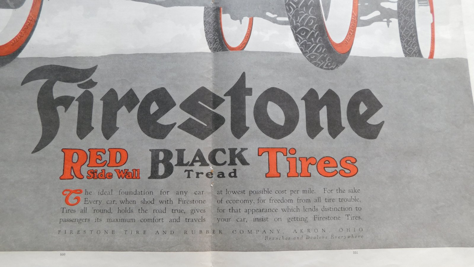 I am still looking for a Firestone Red Sidewall tire from the teens or early 1920's. I have the advertising on my building and nobody seems to think they made them. Here are a few magazine ads, Thanks, Bob.