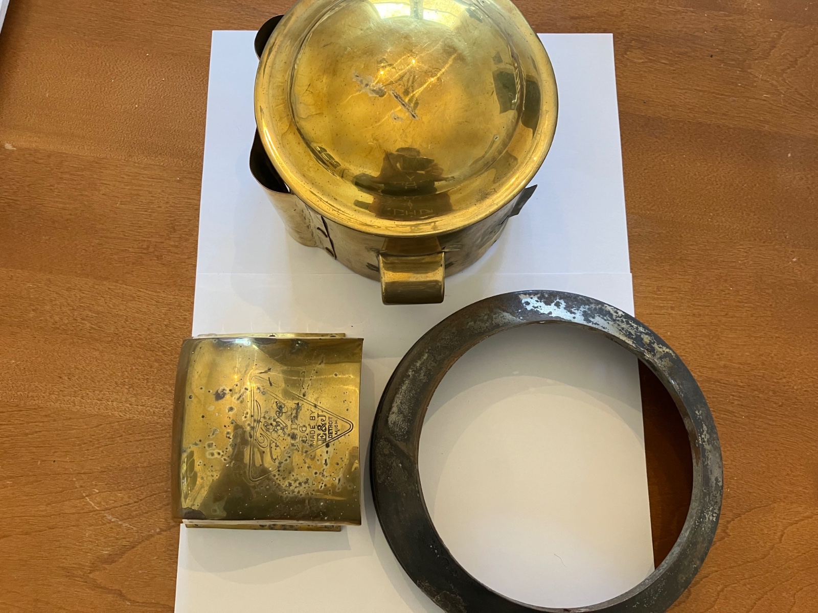 Here’s what appears to be an original E&J 66 headlight. It’s been taken apart for restoration. The bucket is pretty rough. The chimney is in pretty good condition. Included is 2 doors need a little work but good condition.