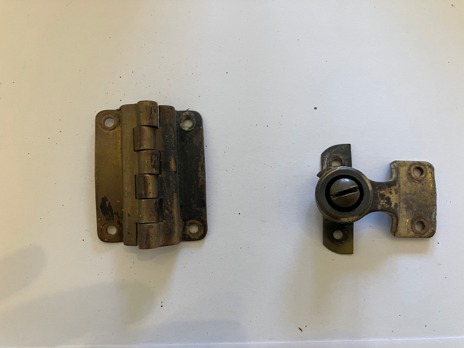 Hinge and door clasp. 2 E and J mirror retainers and 2 retaining rings.