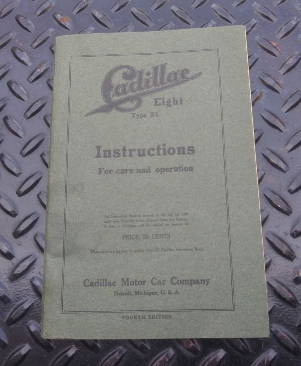 Here is a tough piece to find, an original 1915 Cadillac Eight Type 51 Instructions Book. This book is 9" by 6" and has about 68 pages. It is full of pictures and instructions for operating the first year, V-8 engine model. This is a great book and in excellent, original condition.