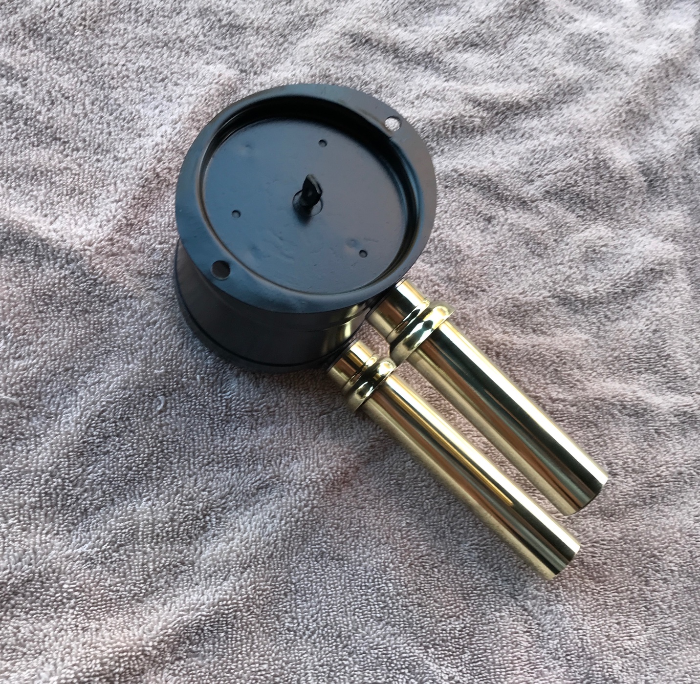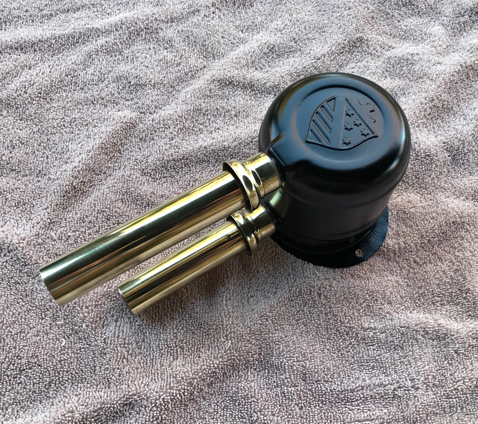 Here is an original very rare early Do-Ray Cuckoo Horn. It was made by the Do-Ray Lamp Company, which is interesting because they were known for safety lights and reflectors, but they also dabbled in automobile accessories. This model is has a fixed mounting bracket. It was designed to mount to the outside of the dash or under the floorboard, with a chain that extended into the drivers compartment or inside of dash. When the chain was pulled, it emitted a loud “CUCKOO! “ sound just like a cuckoo clock. It is in excellent condition, with polished brass flutes and nice satin black paint. Works great when pulled. Very rare and hard to find, perfect to tickle the ladies at the next meet or to tell other drivers what you think of them. 400.00 shipped US.