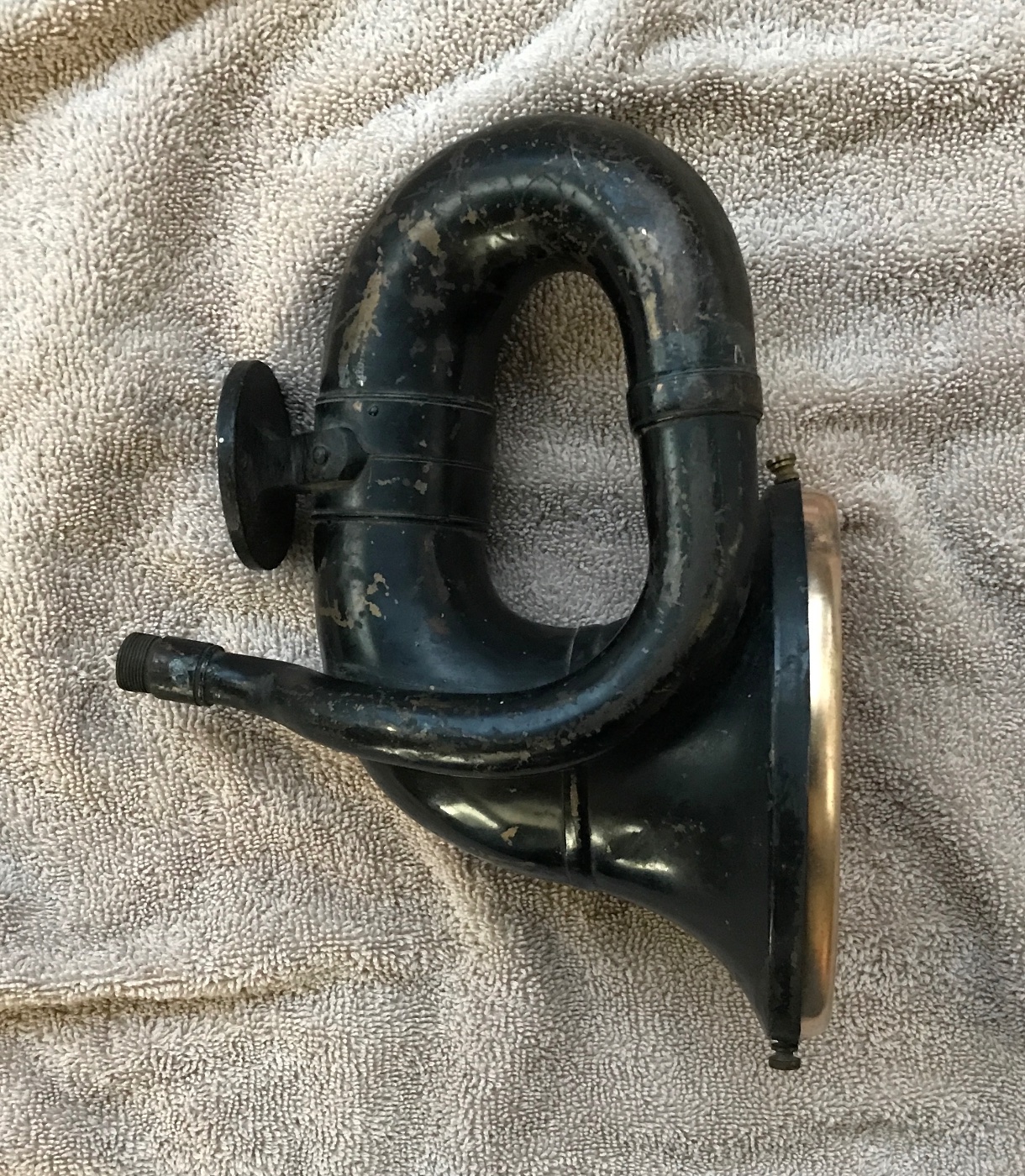 Original 1913 one year only round mount Rubes brass horn. Original paint. Good solid unrestored condition, straight with a few minor dings here and there. Perfect for that unrestored car or restore to perfection. 225 shipped.
