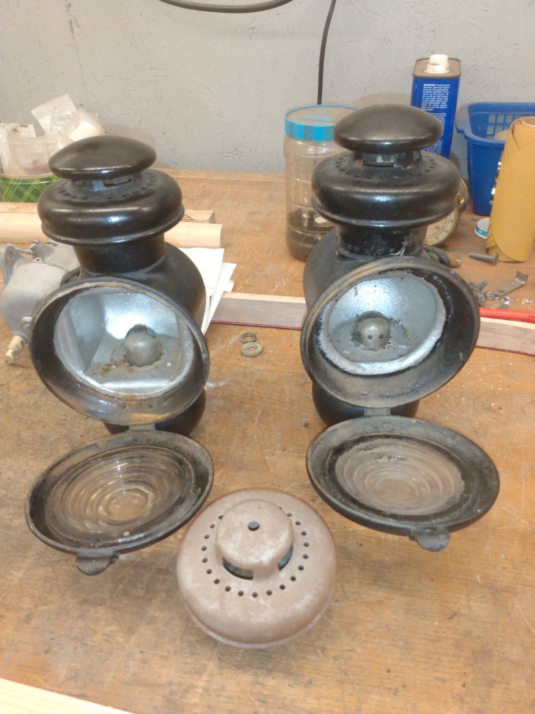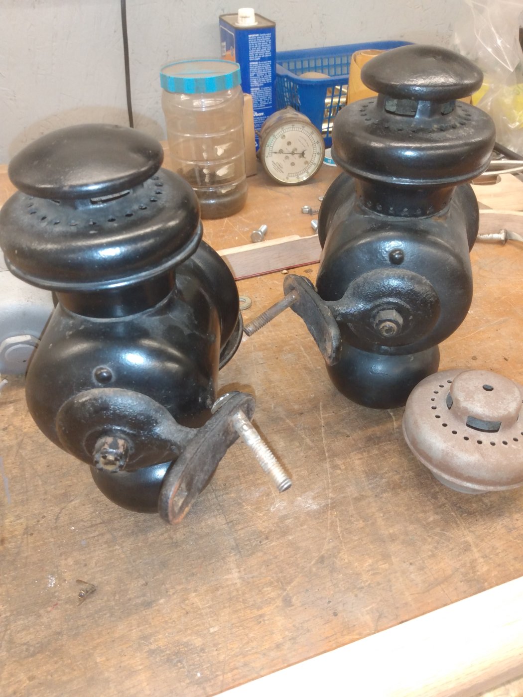 Has the mounting brackets included. One door has a missing catch. Both have burners wheels are tight. Of course one top is different, have matching top to come along. 130.00 for the pair plus shipping. ctleonard64@gmail.com