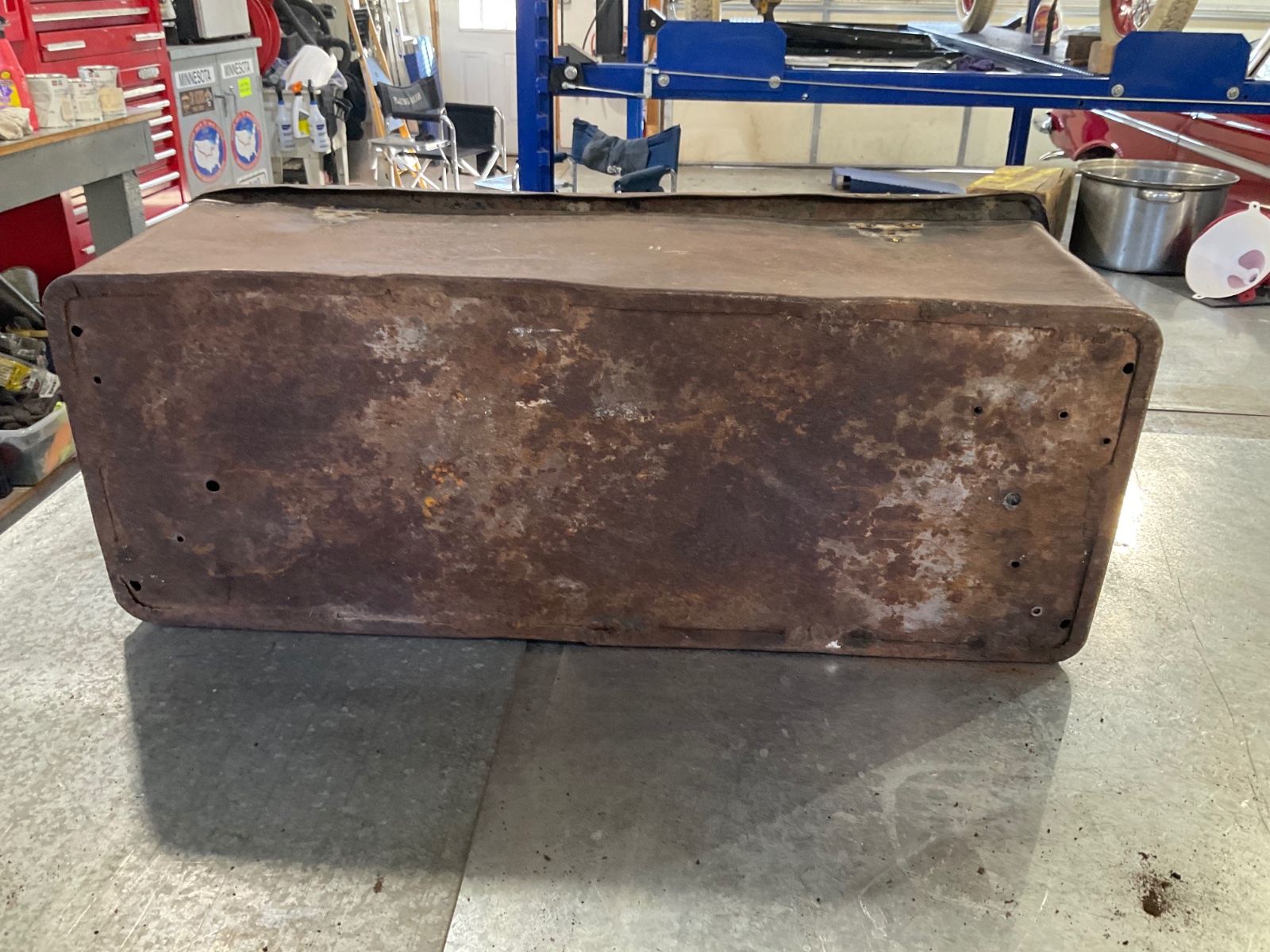 Michael. I have a tool box I purchased many years ago for a 1912 roadster that never materialized It may be larger than the dimensions you were given. Id have to check. From memory its in resl good condition. Shipping from California would be expensive though. If interested I'll pull it out of my attic and take dimensions and photos