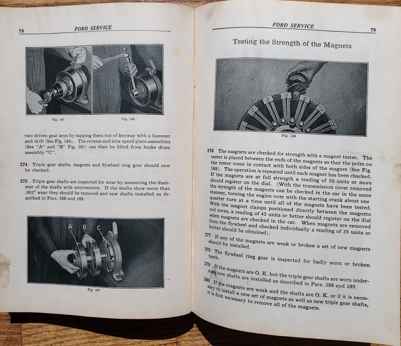 For Sale: Original hard cover Ford Service Manual in nice condition. Binding is good, all pages are there and intact with some greasy finger smudges on a few pages. Rear cover has a stain. These original Ford Service Manuals are slightly bigger than the modern paperback reprints, the pictures are much clearer, and the printing slightly larger. $60 plus $6 media rate postage in continental USA. International shipping will be more.