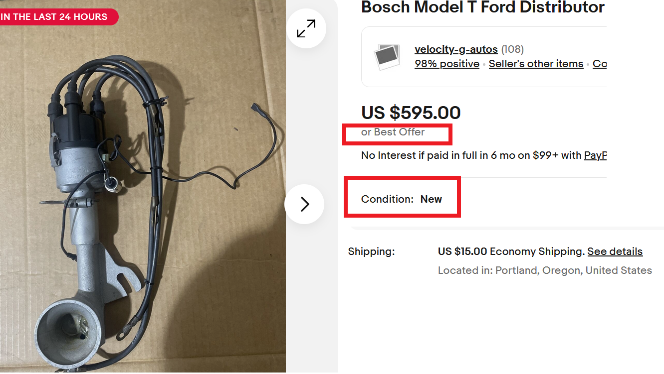 Not Mine - says "new" & $595 no pictures of what's under the cap. Seller has a few other model T parts