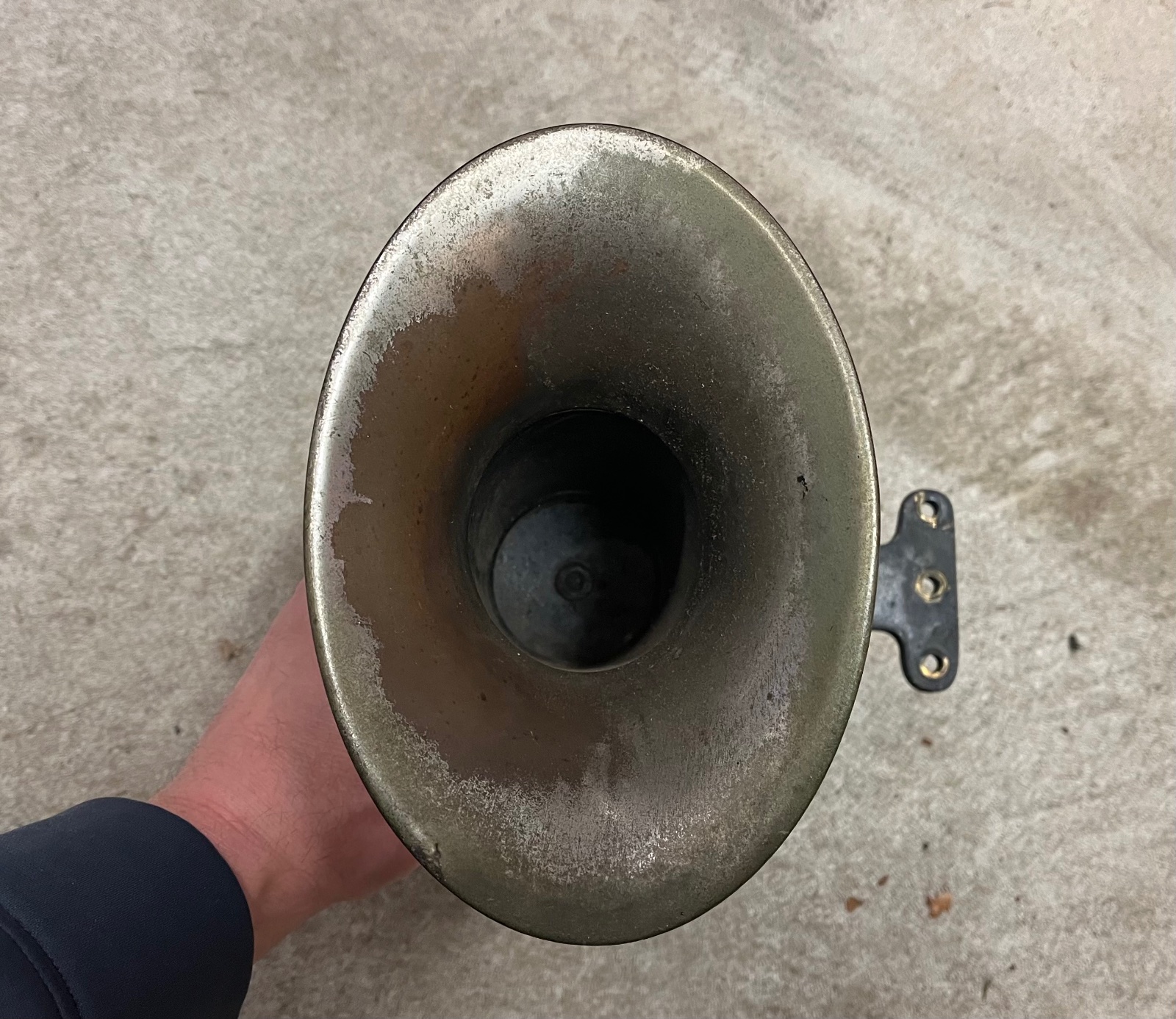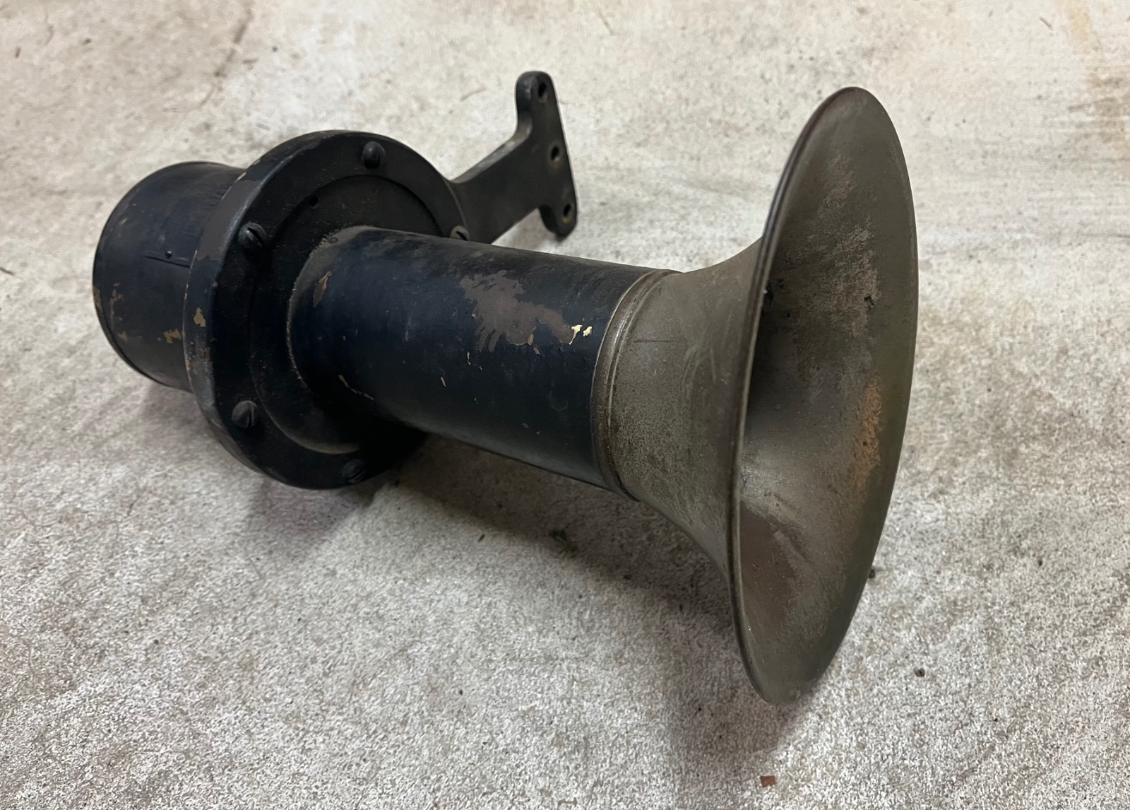 This is a neat Electric Klaxonet horn. Just like a hand operated but electric driven. I hit it real quick with 12 volts and it works. Very loud! The bell looks like it was nickel plated but some has worn off. Appears to be brass underneath.