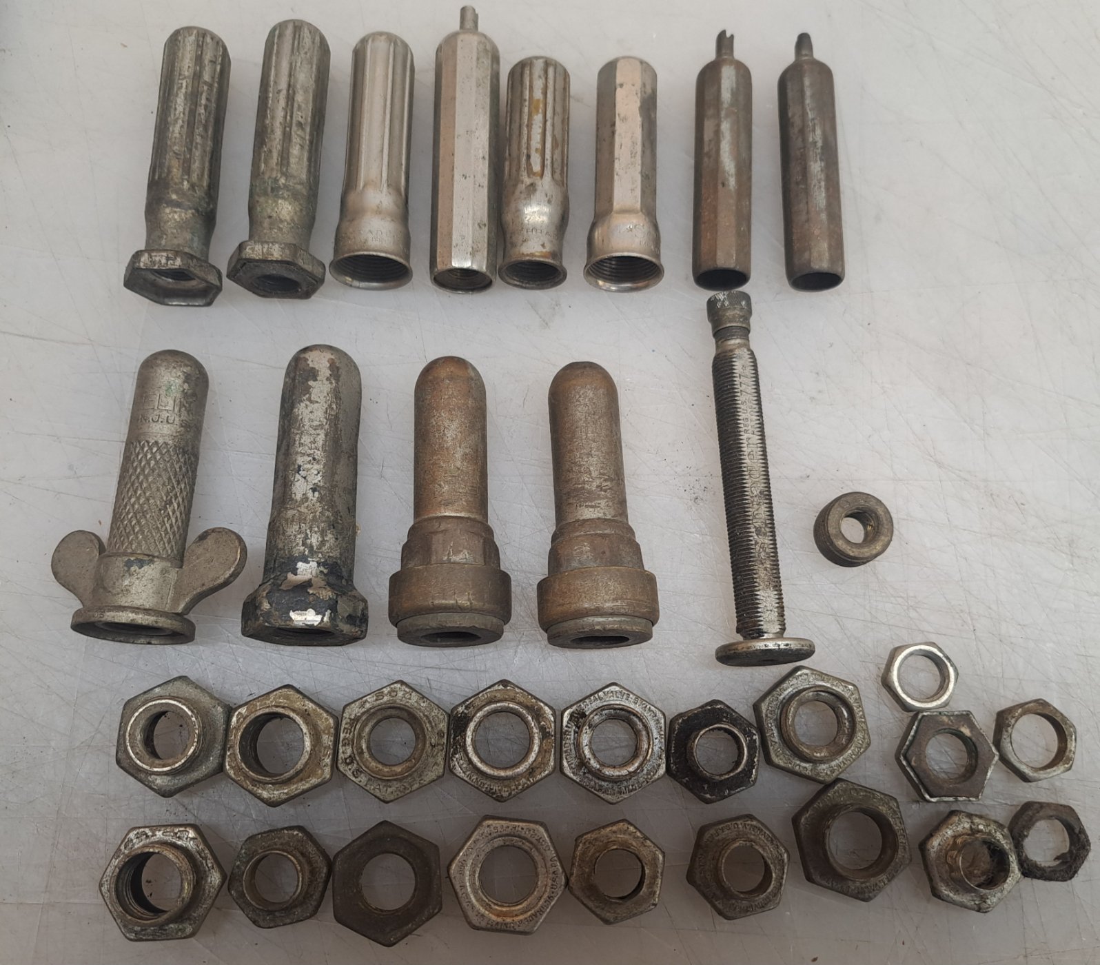 An assortment of various valve stem covers and nuts. Price for the complete lot is $25.00 plus $8.50 domestic shipping. Mark Chaffin (951) 805-0928