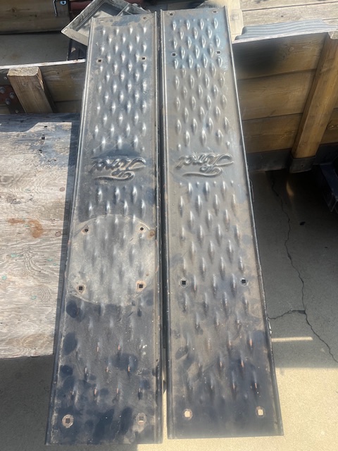 1 really good pair of 1913-14 running boards $225.00. 1 original pair of 1909 running boards, very solid, several extra holes that need welded up. These are no longer being made. $200.00. 1 pair of 1910 with several extra holes, $85.00. One extra 1910 board, very nice but also with extra holes. $75.00. All plus shipping or free delivery to Bakersfield swap meet. kdmks AT att.net.