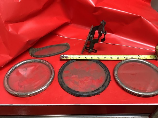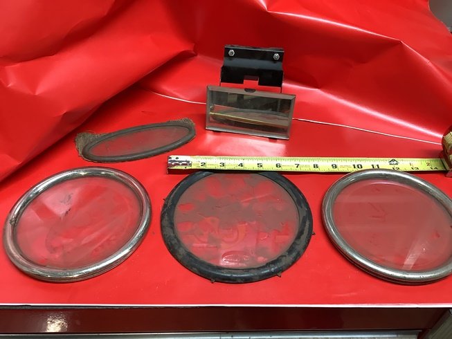 Port hole beveled glass and oval Glass plus open car reproduction mirror asking $50.00 for all shipped to your door call Matt 503-824-268one