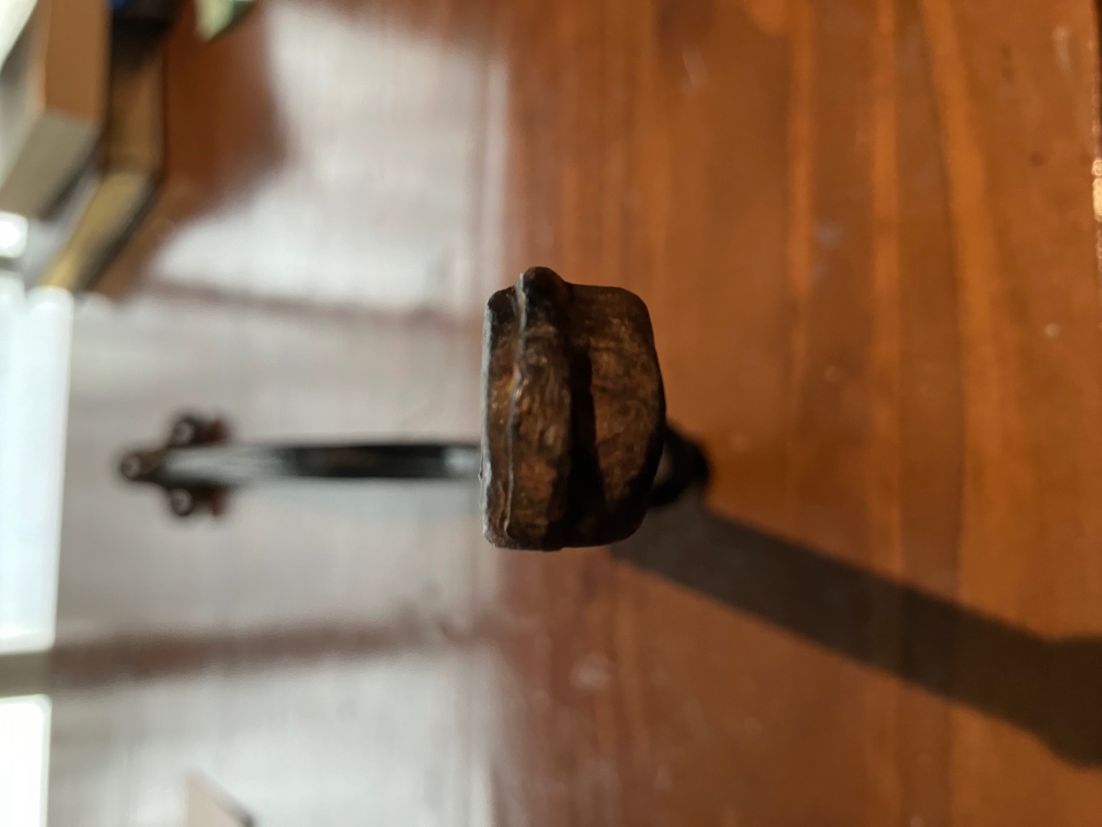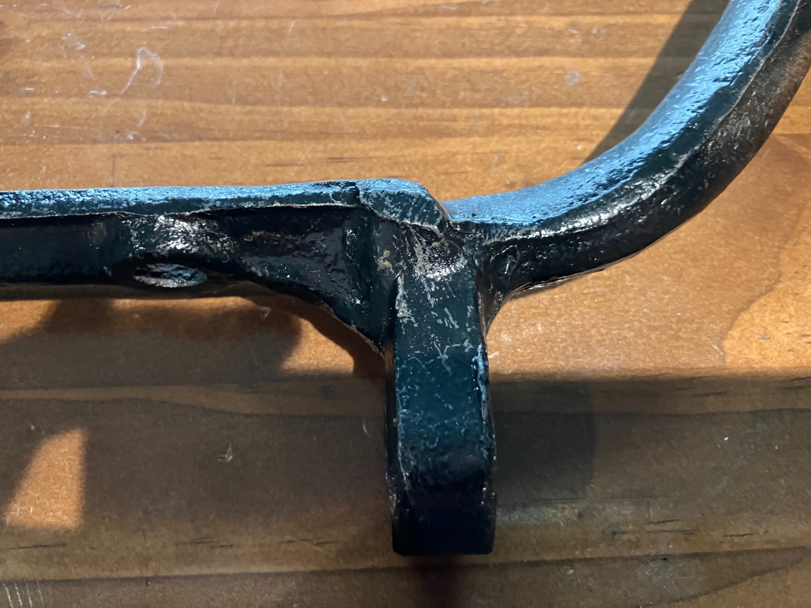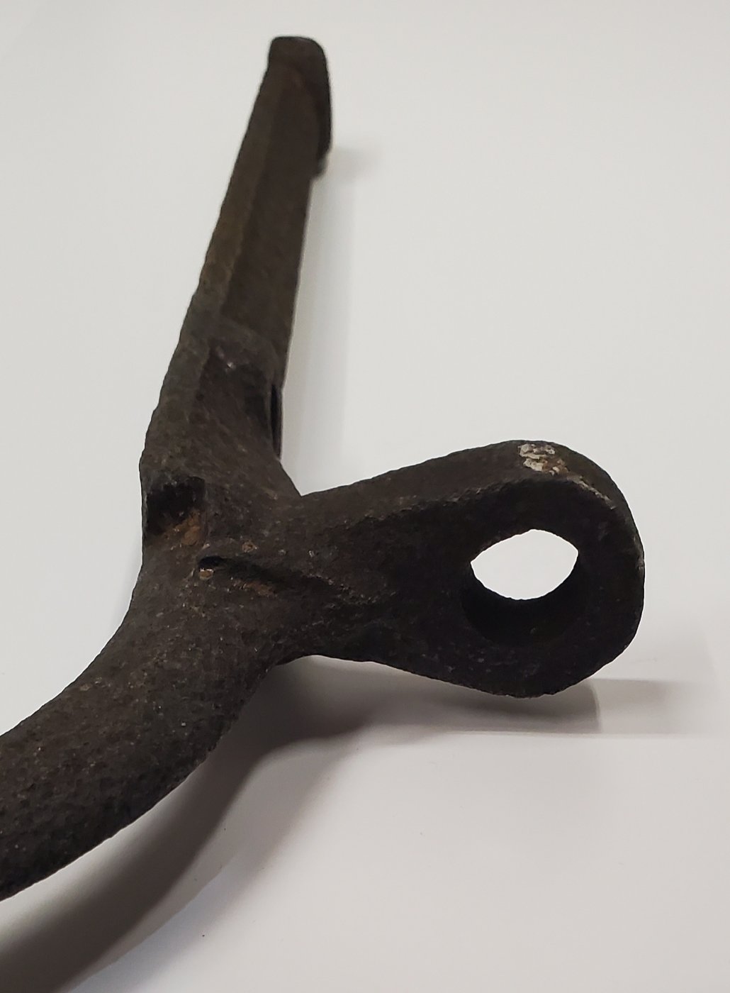 Richard, your example has the bottom edge of the frame mounting flange with the curved down edge between the two lower holes. It needs to be concave at that point. You will also notice that the forge flashings at that end are along the top and bottom of the arm. The earlier ones have that flashing on the sides. This sideways stamping leaves the start of the arm rather flat underneath until it transitions further down the arm.