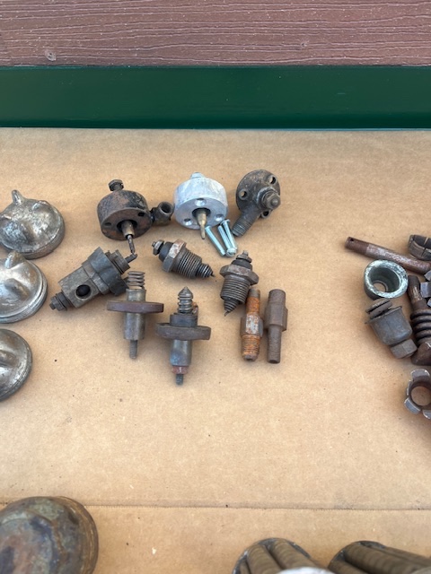 Misc radiator mounting parts$10.00. Pile of buckles $15.00. Magneto plugs all for $40.00. Rear axle bearings $40.00 for all. Hubcaps all for $10.00. Radiator caps all for $10.00. 2 bendix , $40.00. All plus shipping. Kdmks@att.net.