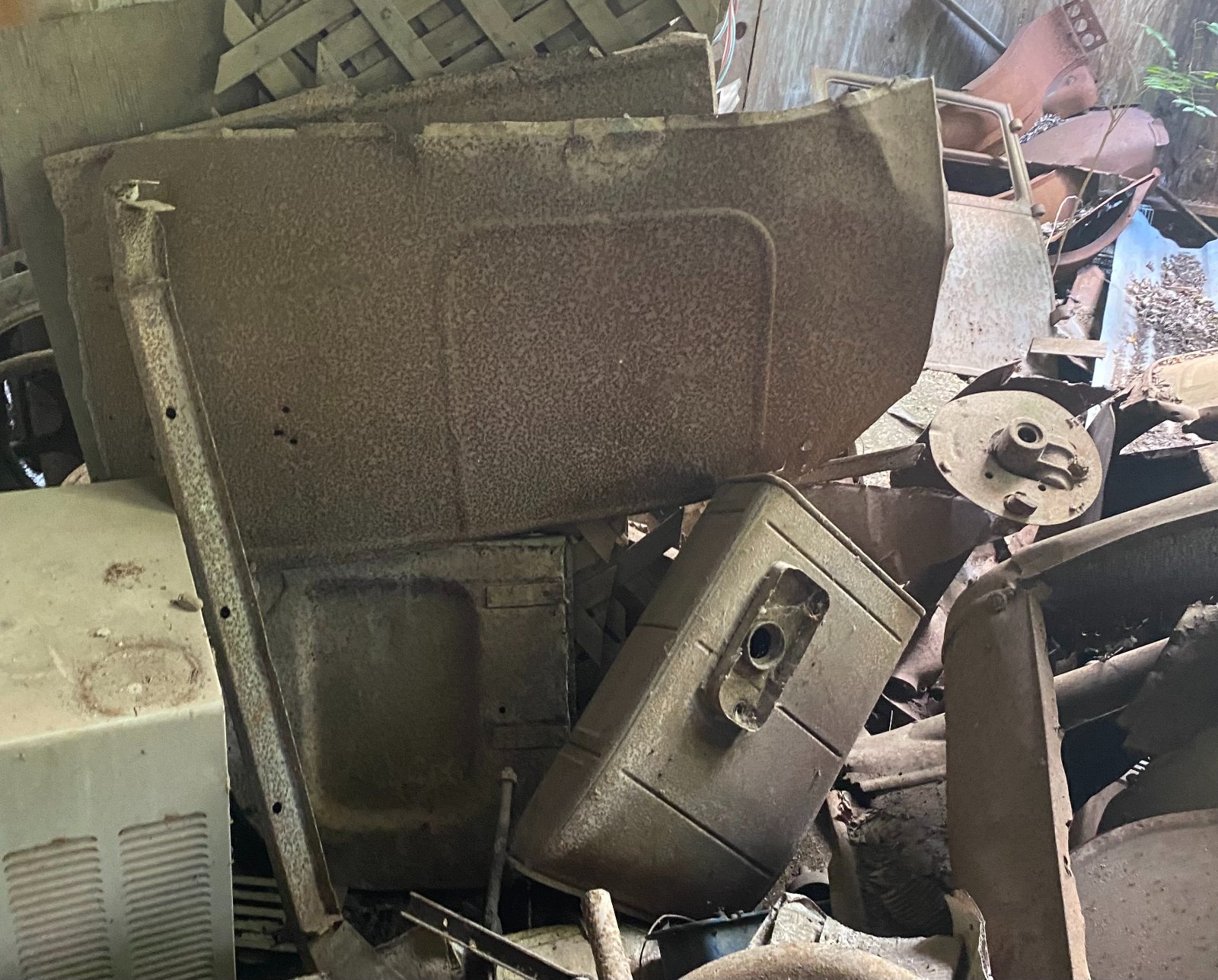 I have some body panels for a touring car also have door skins and some rear sections here is one picture of a left side there is also a 26-27 gas tank in the picture I'm in Sherman texas. I'm asking $25 for the body pannel
