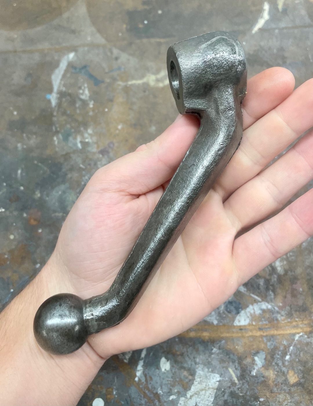 This is a genuine Ford Pitman arm with the correct angle for 1926, 1927 cars. This came off of a front end, and it is not a defective NOS part. It has been lightly cleaned up to show its true condition. The ball is near perfect with less than .004 wear. The machining marks are still evident. This is a hard to find good quality part.