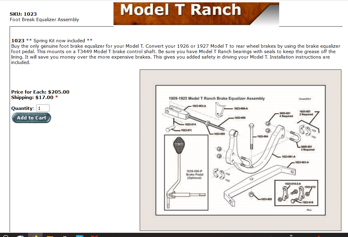 You may be putting the car before the hearse. What is it that you want to accomplish? Contact Model T Ranch. The diagram has different dates than the textArbs wrote: ↑Wed Aug 07, 2024 9:18 amGreetings! I'm looking for a brake equalizer that fits a '23. I see ones for sale at the vendors for '26-'27 but not older cars. If you have one you would be willing to sell, know where I can get one, or have plans of how I can put one together, I would appreciate it.