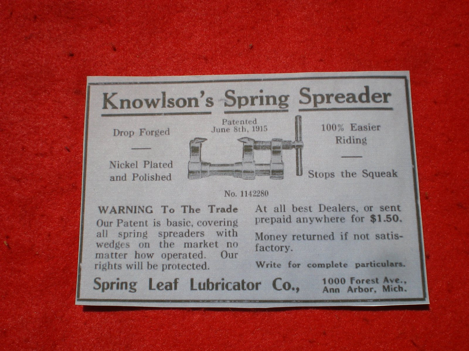 FS: Knowlson Leaf spring Spreader 1915. Remove the vehicle's weight from the spring and use the tool to spread the individual leaves to lubricate between them. Helps give a smoother ride and long life to the springs. Price $100 plus shipping. Call or text (248) 894-75fiveone. Thanks, Walt