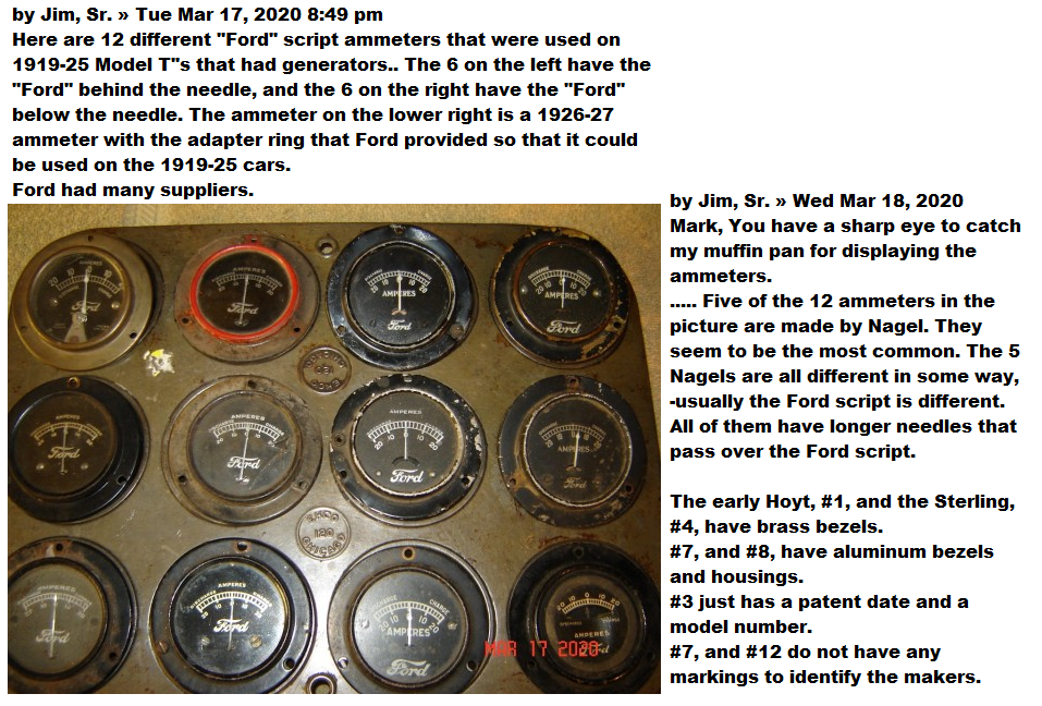 I believe you are correct that one of the first ammeters were like the one in the upper left but that style even appears in the 1923 parts book as well. So the question is was it the only style in 1919 or were multiple suppliers offering different designs?