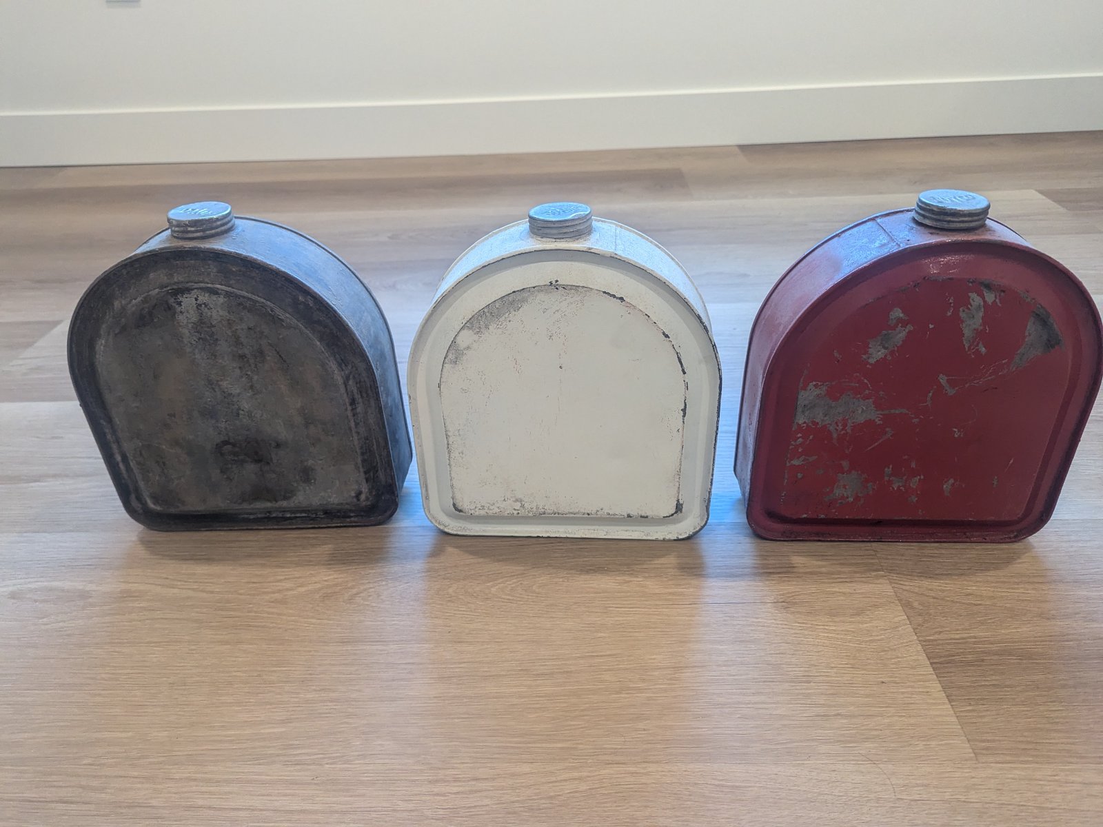 Set of three Boyco running board cans (9-3/8" deep). These are in decent shape, but do note the dent in the unpainted can. $200 OBO plus shipping. Local pickup in Burbank, CA