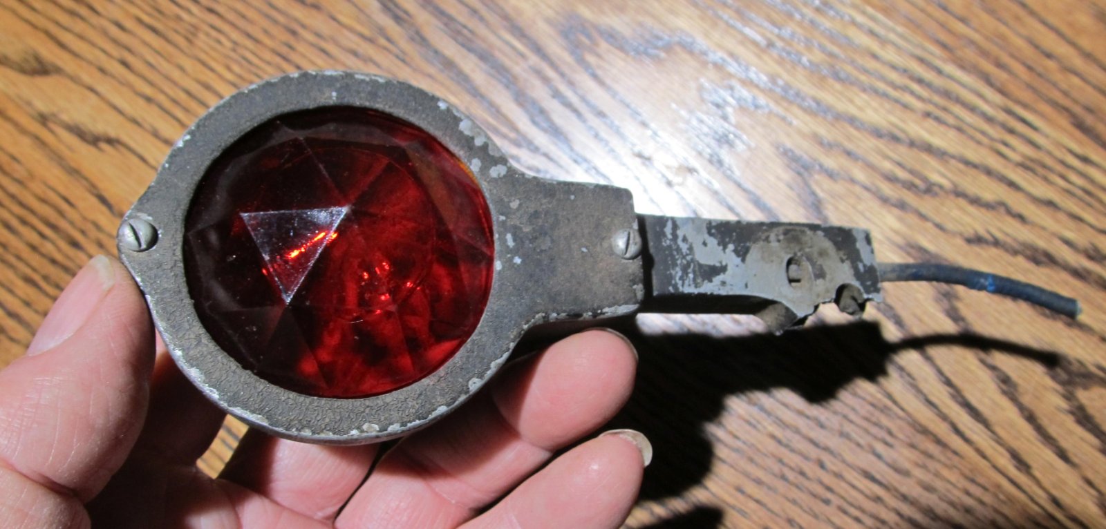 The red jewel lens measures 2 inches in diameter. This was part of a larger setup but can easily be repurposed for your car. Asking $45 plus postage.