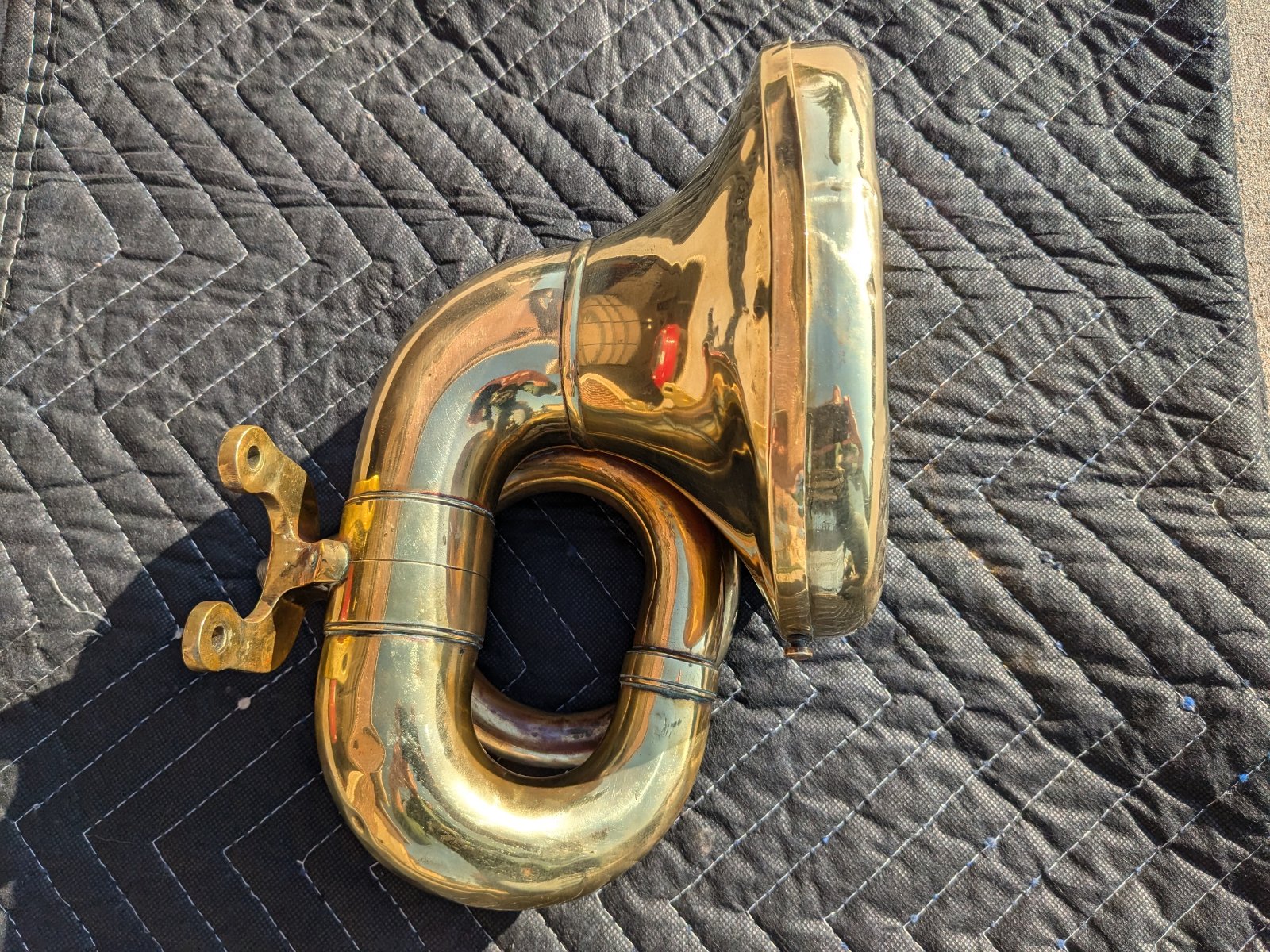 Restored Rubes triple twist brass horn restored and ready to install. It is has some usual dents and small crack along one side of the removable front piece where it fits into the horn. $300, which includes shipping within the US.