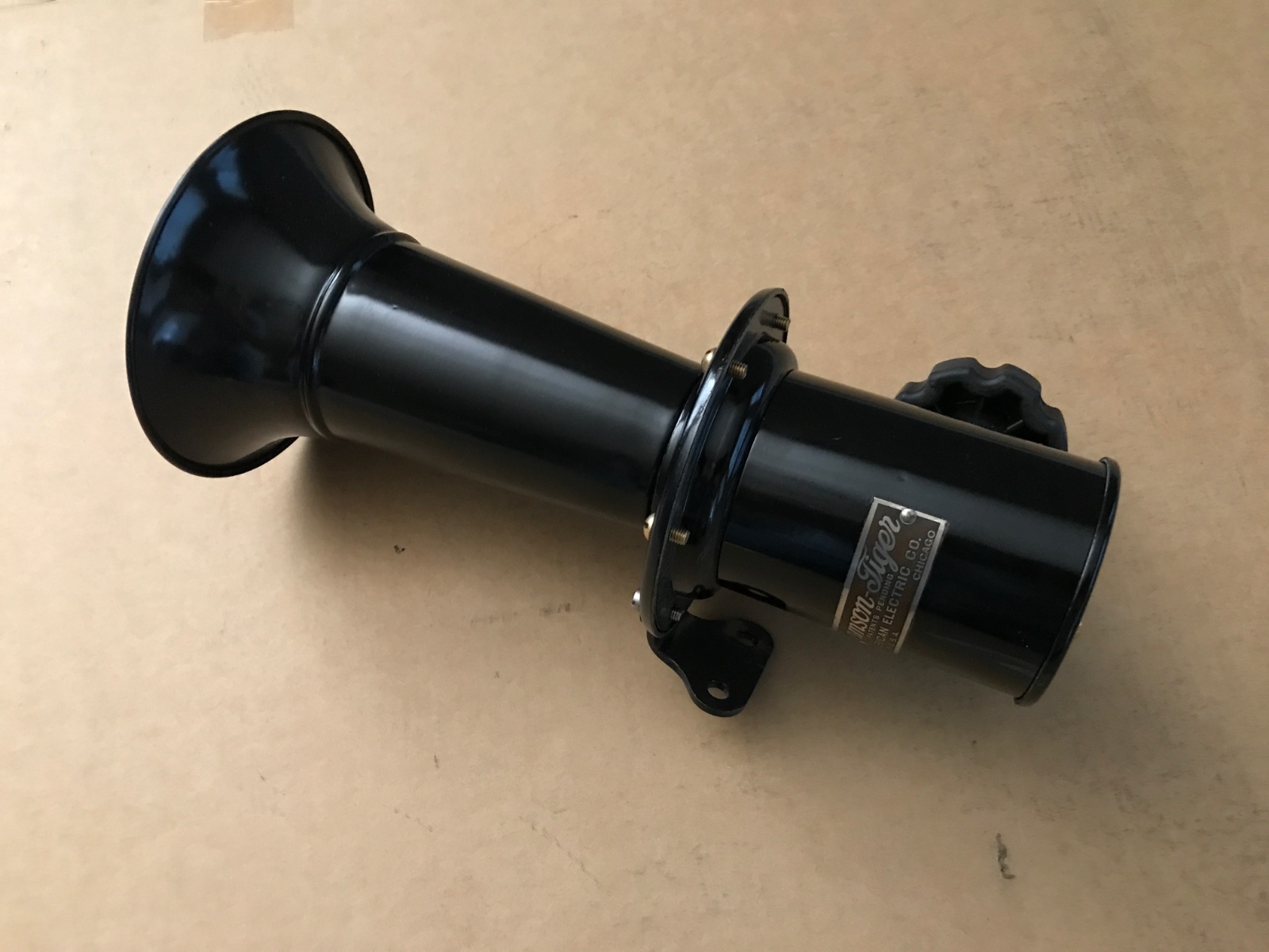 Rare Samson Tiger non-electric manual ahooga horn. Excellent condition. This unique horn utilizes a fluted knob instead of a plunger. Works great. The fluted knob is simply turned and with each twist, the horn emits a very loud “ AaaaaWhooo!” Very nice horn with nice paint. 11 inches long, 5 inch diameter bell. As seen advertised in the 1915 Ford Owners catalogue. Ready to mount and use. 175 includes shipping.