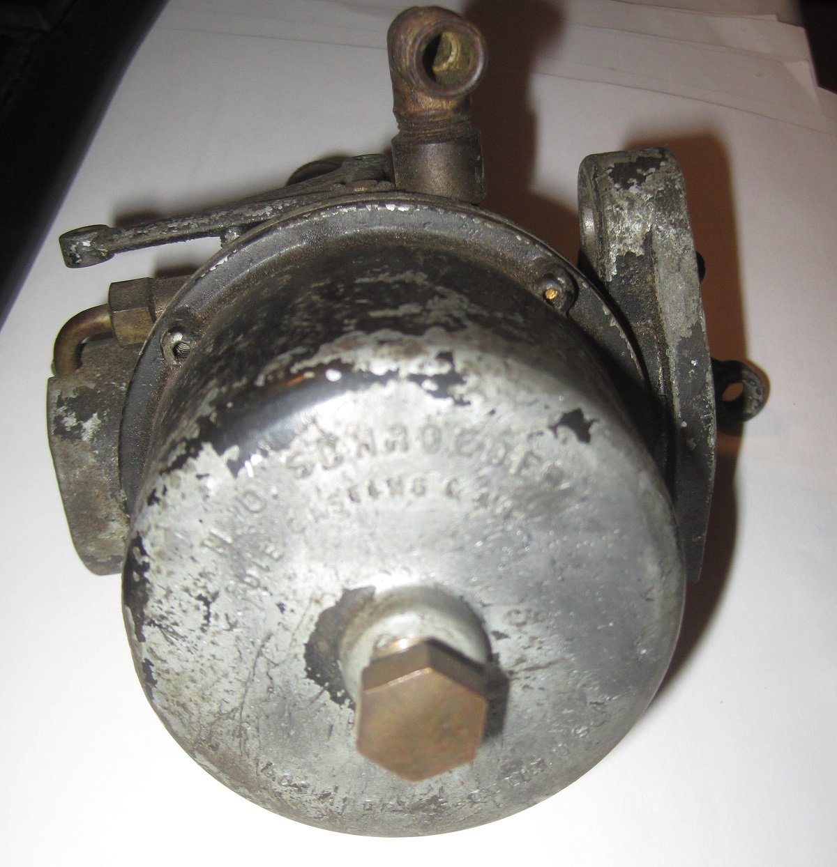 FS: An aftermarket carburetor I've never heard of, mfd by H. D. Schroeder Die Casting Co., Los Angeles. Has kind of an oddly complicated main jet / venturi setup, probably optimized for fuel efficiency rather than performance. It looks like it cost alot more to make than the Holley / Kingston carburetors of that era. If you collect odd accessory carburetors or are a carburetor nerd you might want to take a look at this. Asking $50 + shipping.