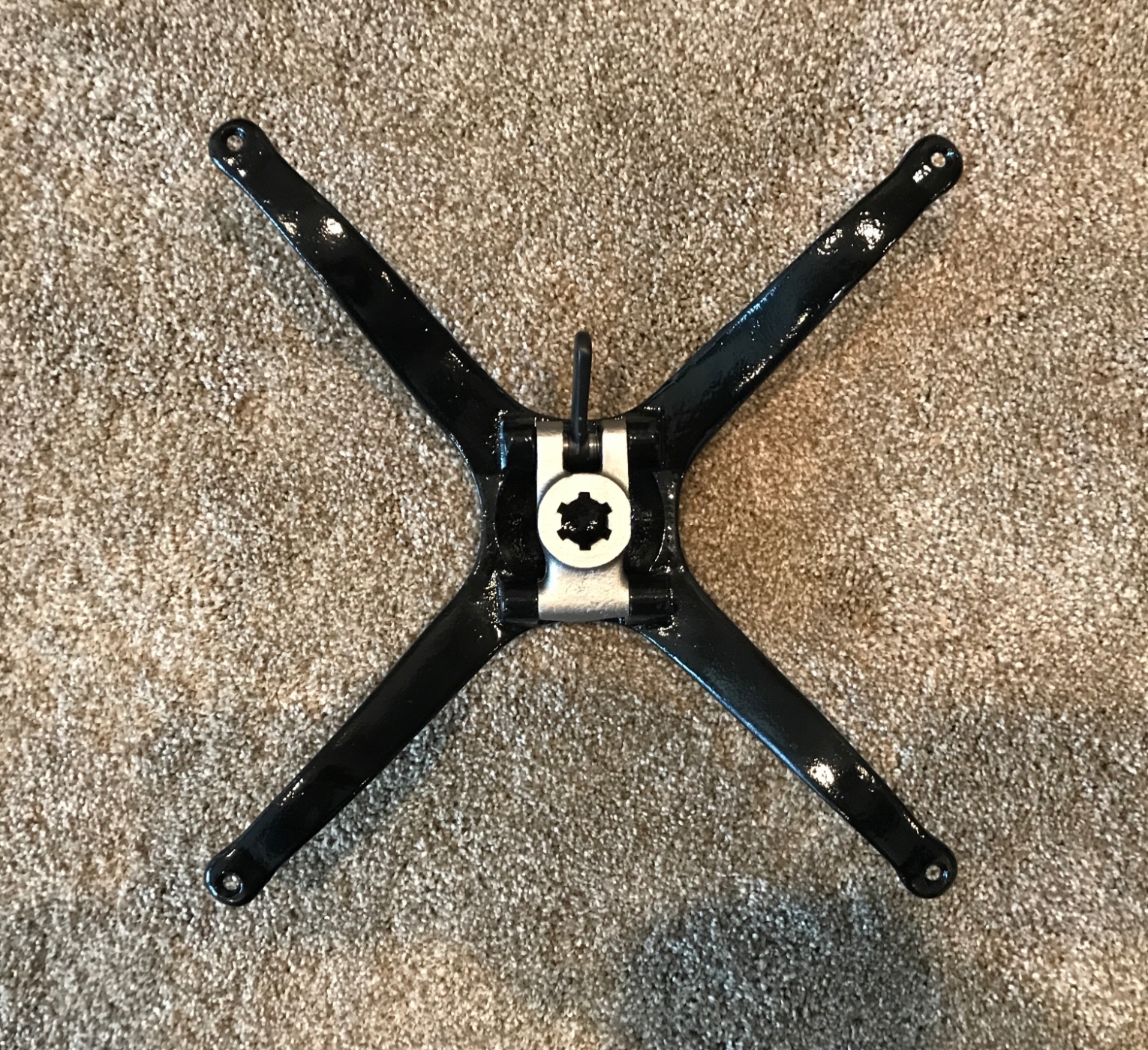 Original accessory Model T Ford heavy duty cast steel fatman flip up folding steering wheel center. Ready for a 17 inch wood rim. Works by pulling lever down, which allows steering wheel to flip up out of the way. Great condition, nice paint with some minor pitting, solid with no damage or repairs. Nice looking wheel. 225 includes shipping lower 48.