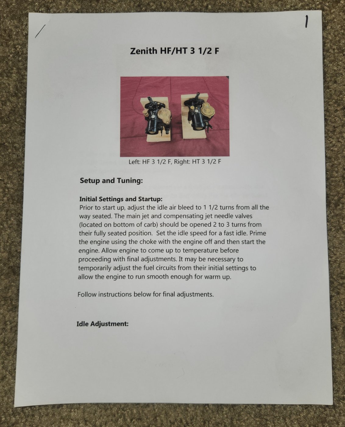 Fully rebuilt Zenith HF 3 1/2F. The rebuild included a new larger aluminum venturi and was converted to adjustable jets. The carb will come with the float height already set to the correct height. Included will be a set of tuning instructions.