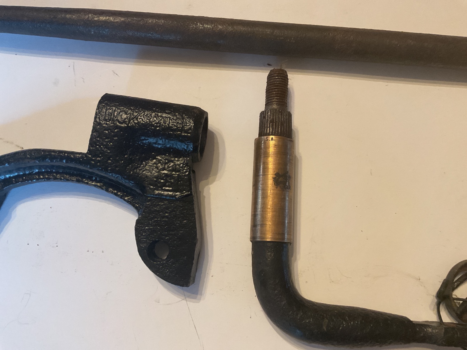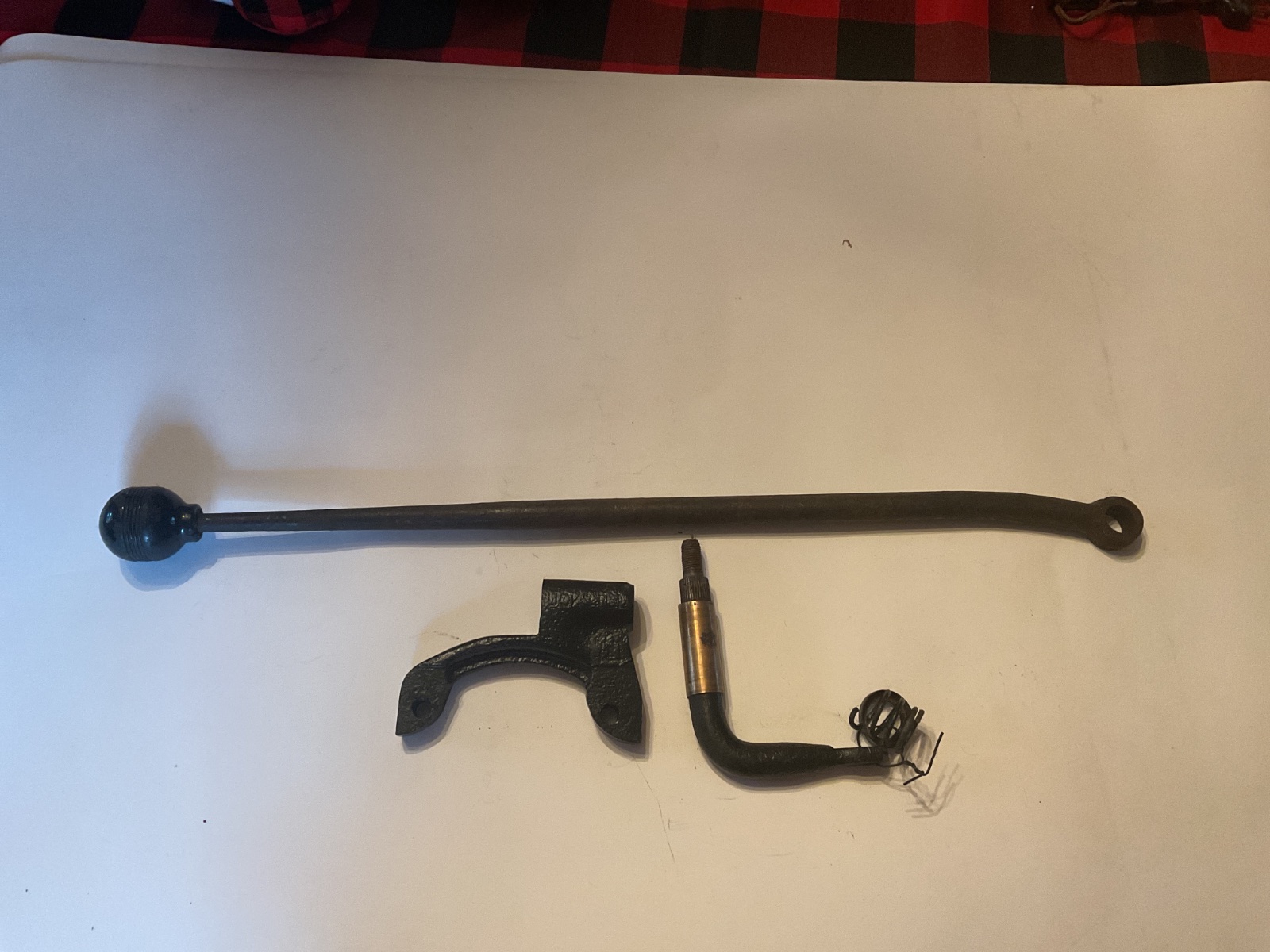 F/S. Ruckstel shift rod and bracket. The rod and mounting bracket are in good useable condition. The shifter rod still has the original knob. The only thing missing is the nut to hold the rod to the bracket. The splines on the shifter are worn some but still hold. $100.00 plus shipping. PayPal preferred, but check or cash are good also. Please email me if