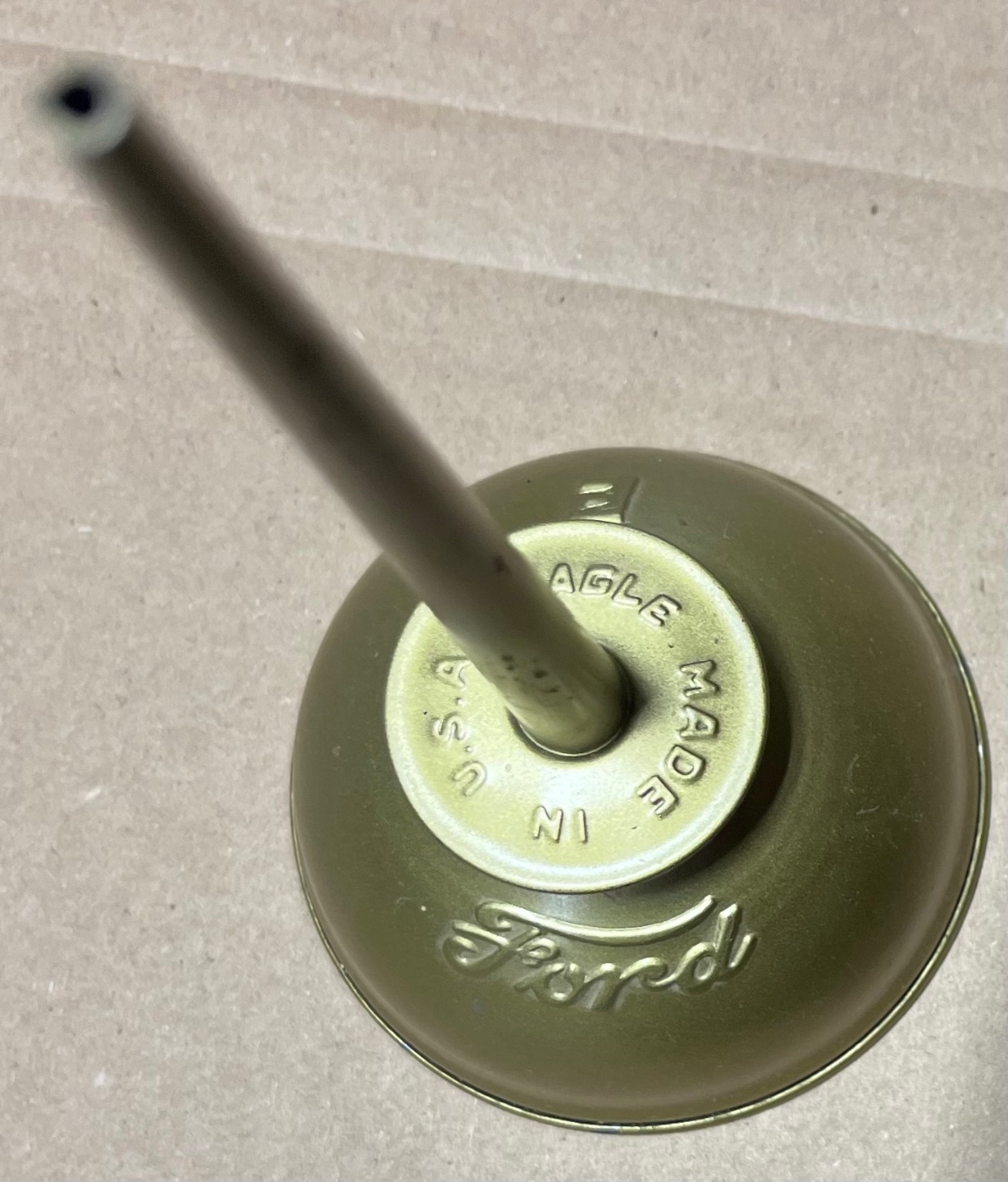 2 available of an older repro oil can with the Ford Script and “E” for the manufacturer Eagle. The oil can is steel and painted gold in color. $25.00 plus shipping Lang’s 1-800-872-7871