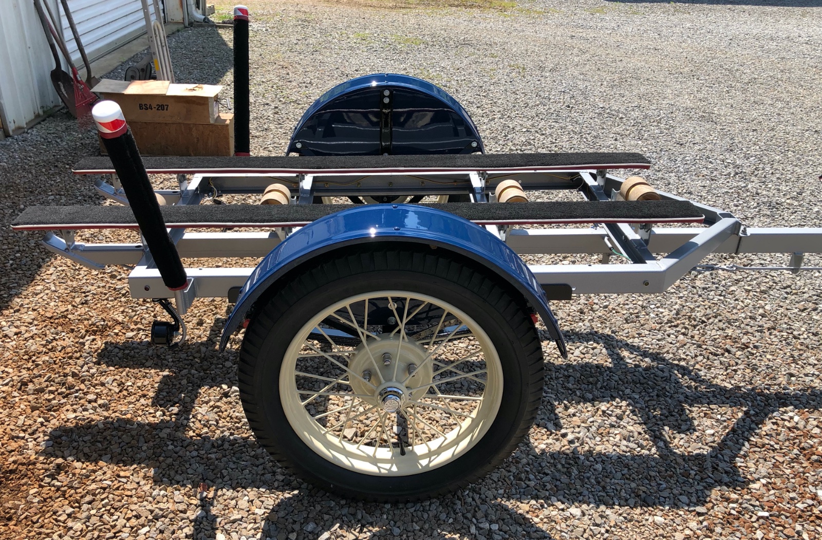TRAILER: Sears and Roebuck accessory 6" drop axle with 1926/27 wire wheel hubs, wheels, and new Firestone tires, tubes, rim liners. Custom pressed channels, steel, fenders, Model T twin element tea cup lights, solid hickory rollers covered in cork, and more and more...